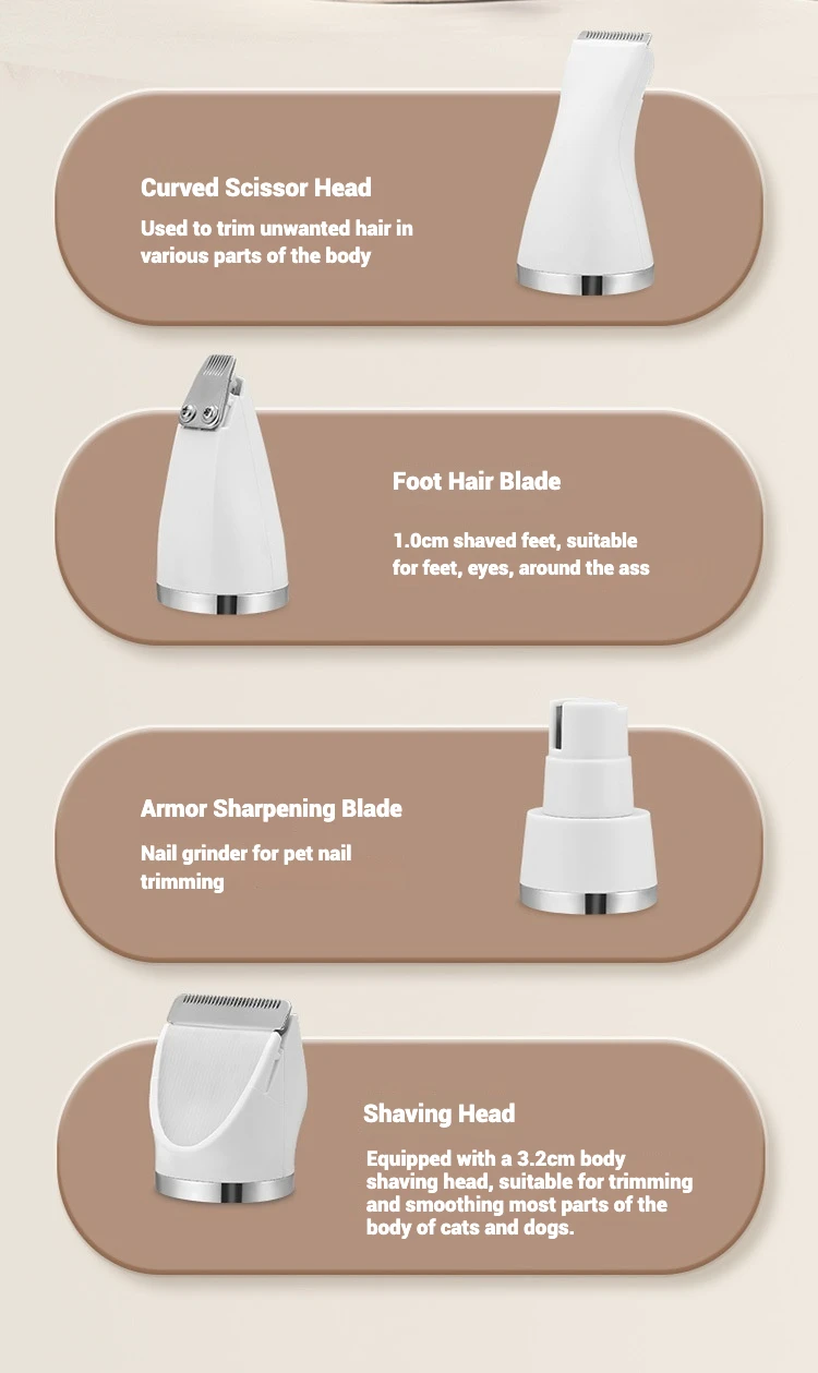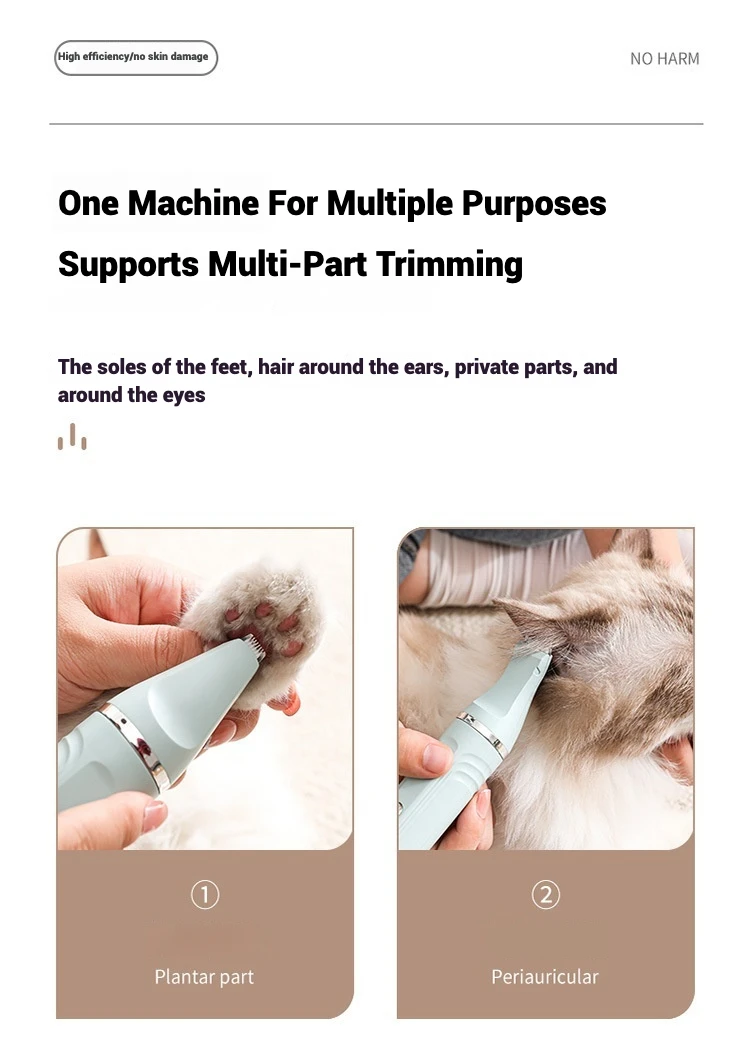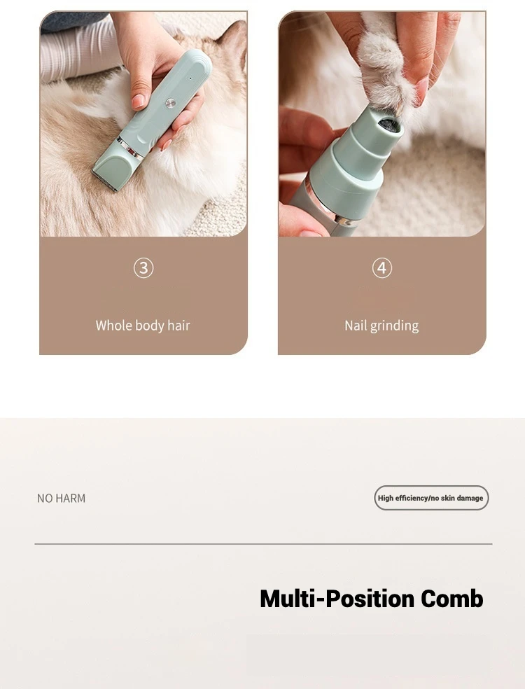 🌟 3. All-in-One Grooming Solution: With a four-blade configuration, this versatile tool handles feet hair trimming, shaving, and nail polishing. One device meets all your pet's grooming needs.