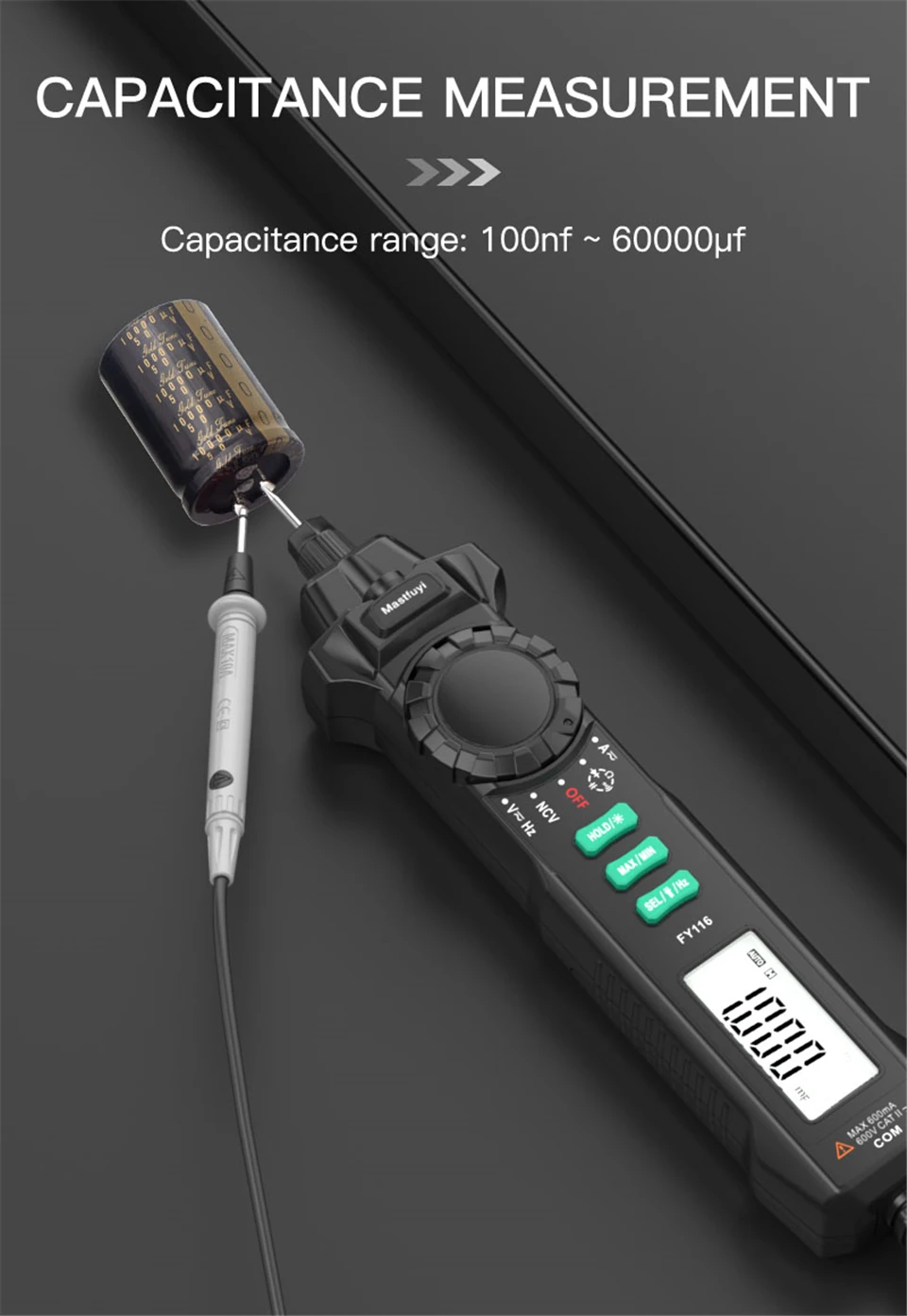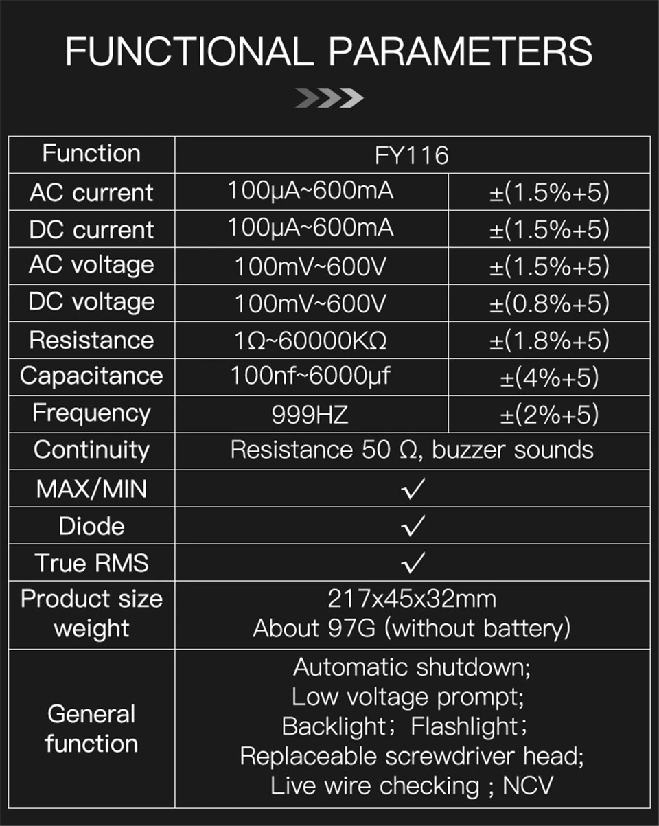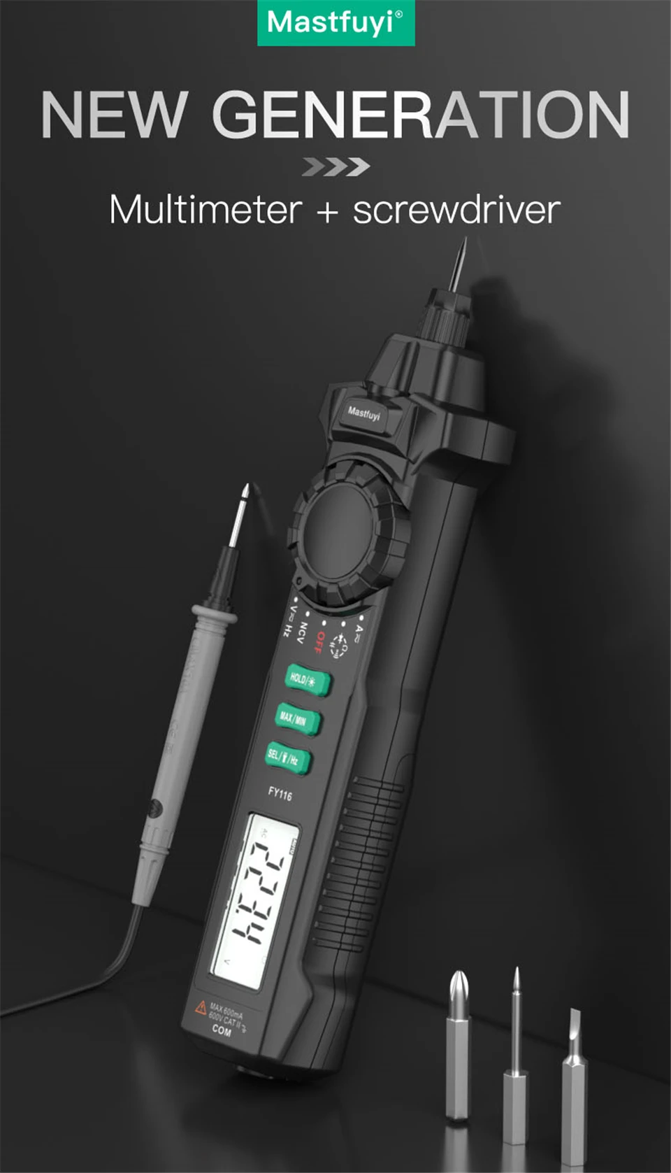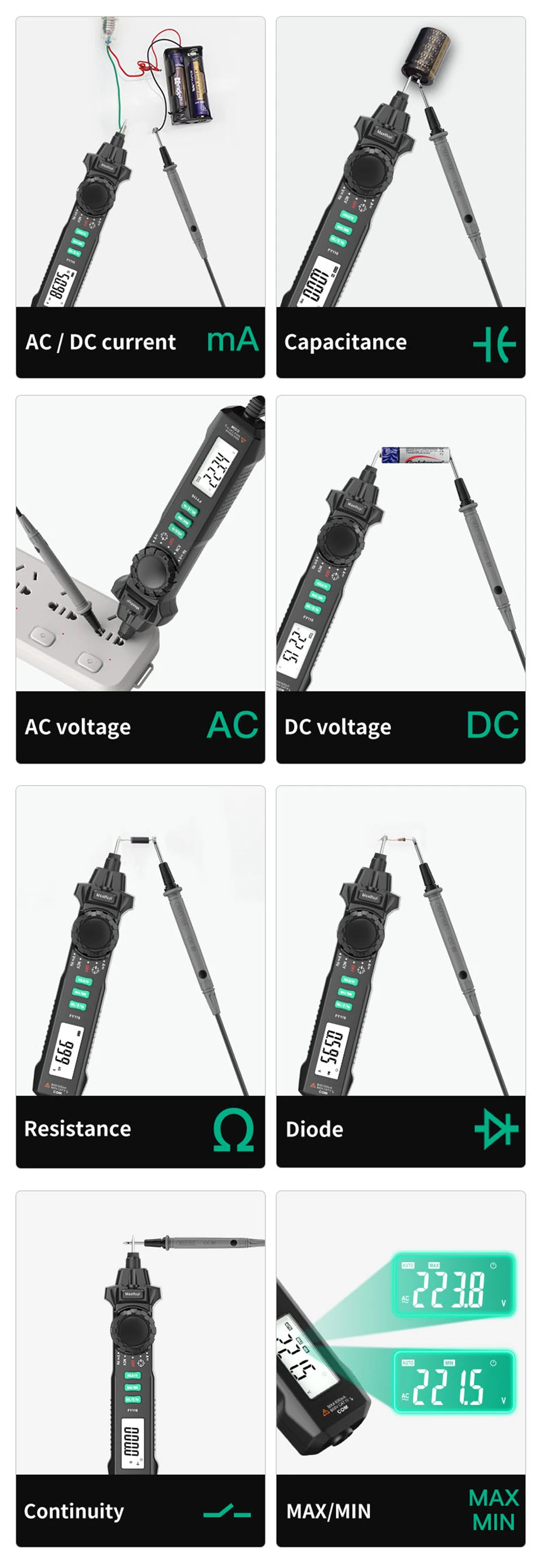 Multímetro Digital FY116, medidor Universal portátil, Detector de corriente de voltaje inteligente, tipo bolígrafo, multímetro, 6000 cuentas, prueba de voltios