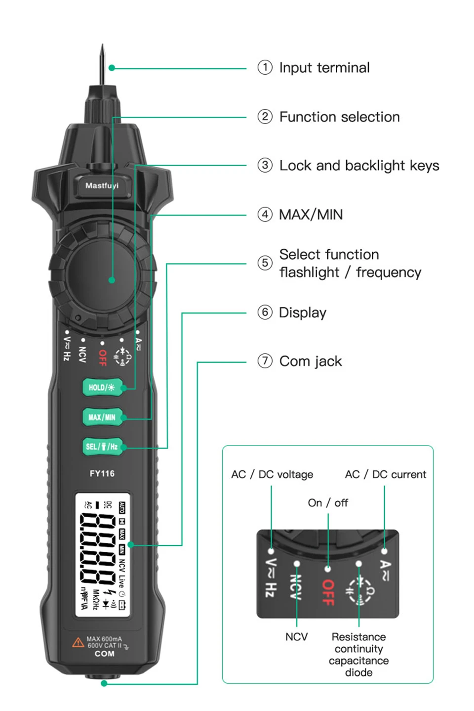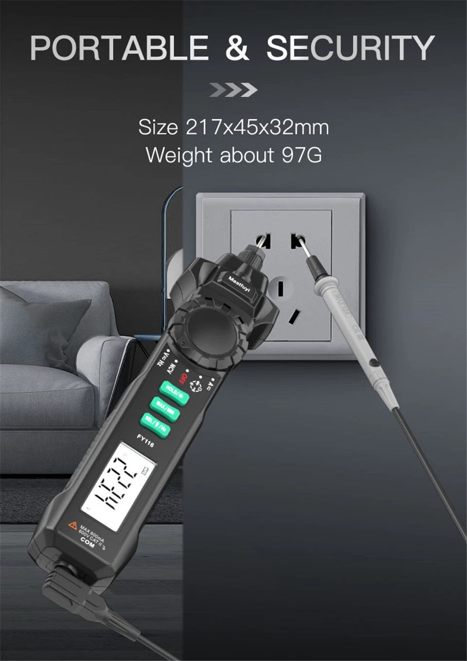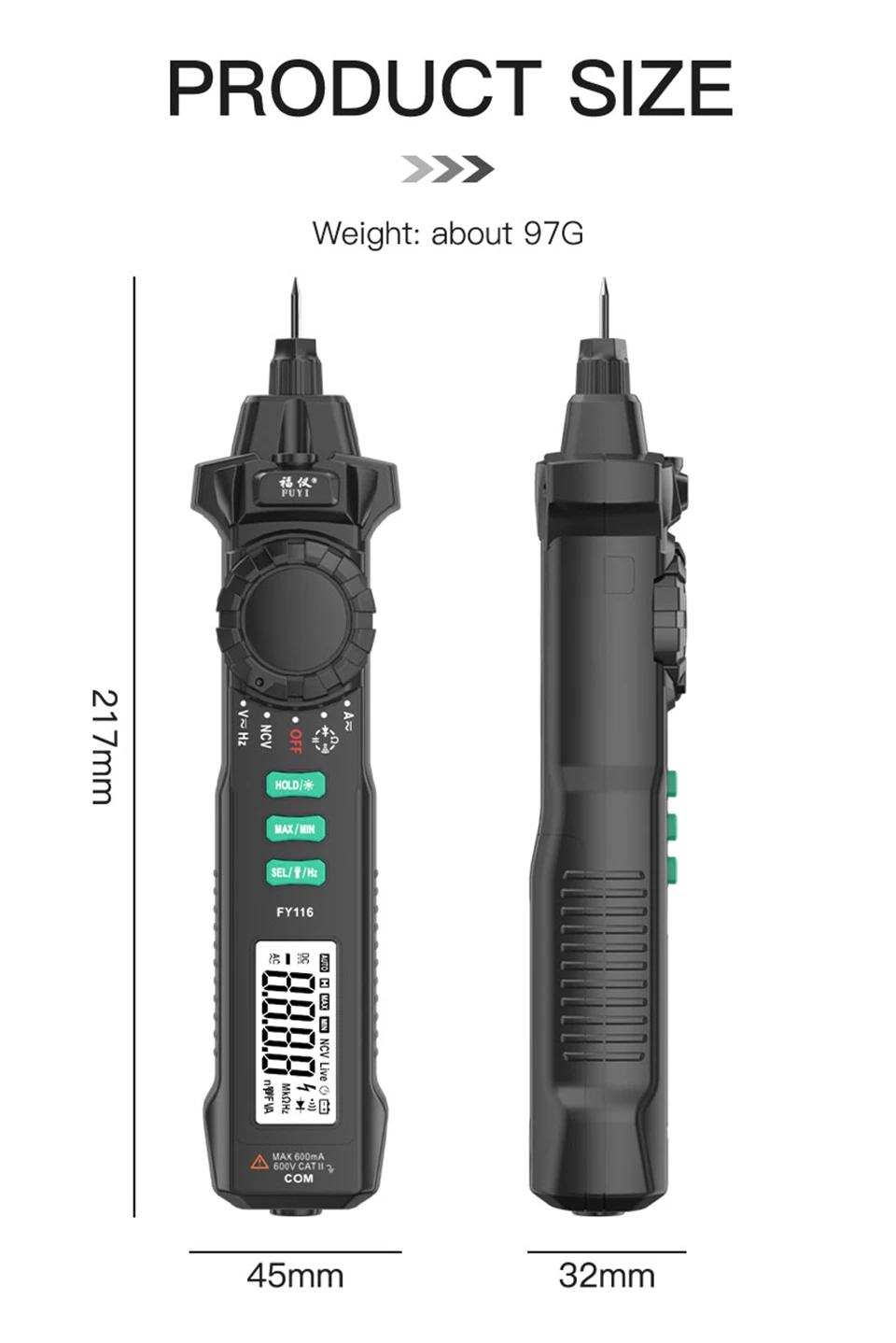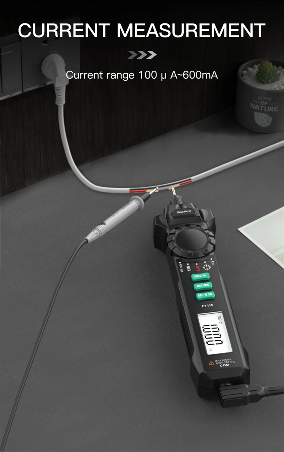 Multímetro Digital FY116, medidor Universal portátil, Detector de corriente de voltaje inteligente, tipo bolígrafo, multímetro, 6000 cuentas, prueba de voltios