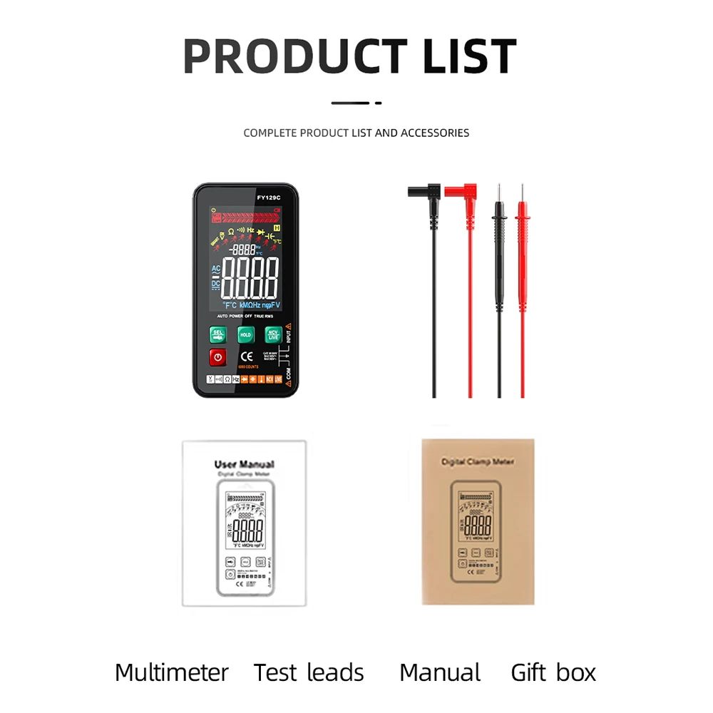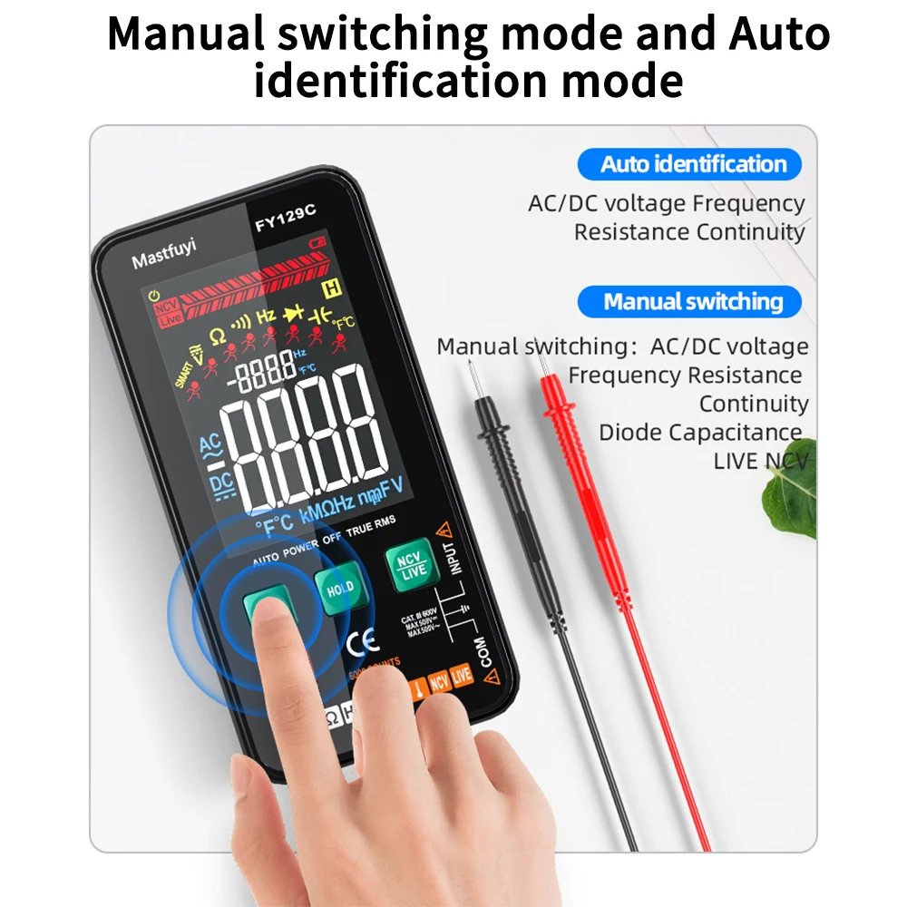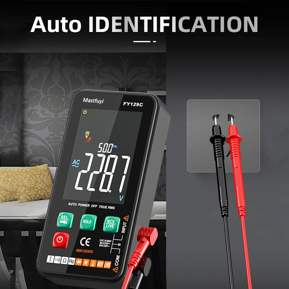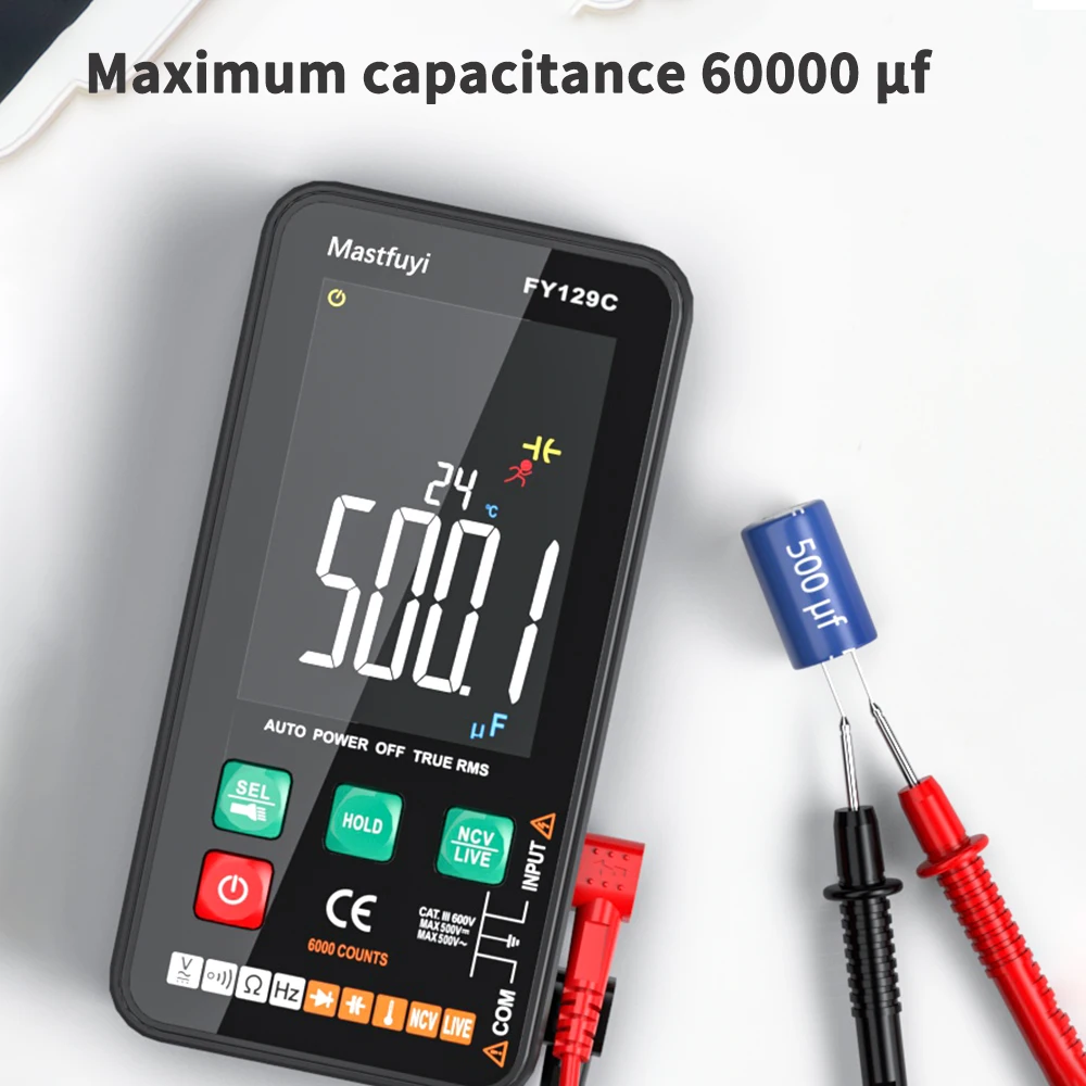 Multímetro Digital con pantalla a Color FY128C/129C 5999 T-RMS Probador de electricista Profesional Multimetro de capacitancia de voltaje CA CC