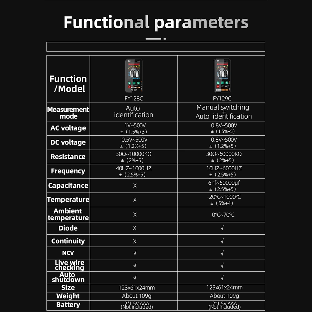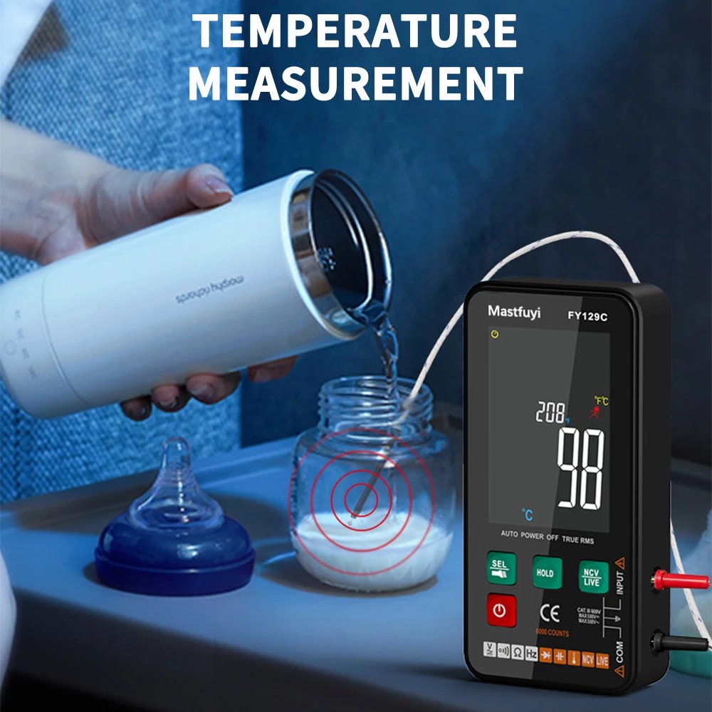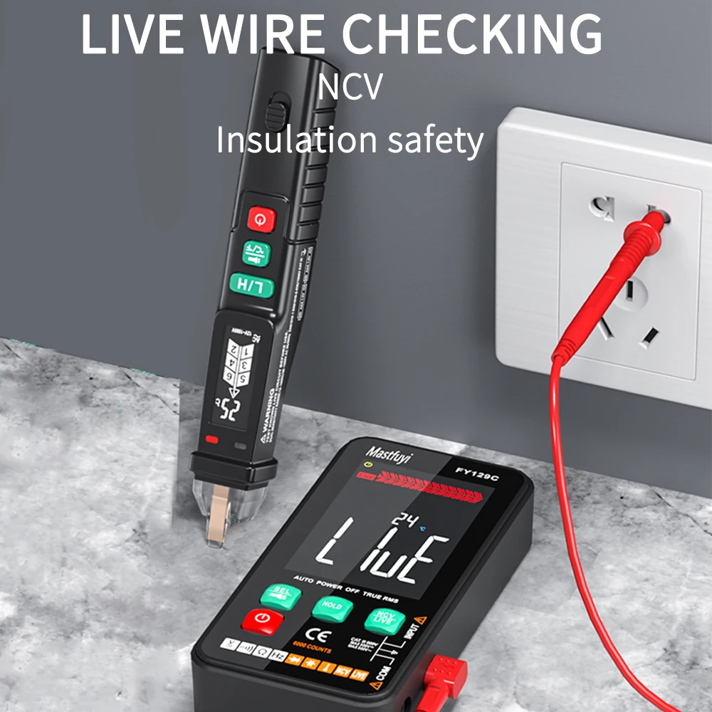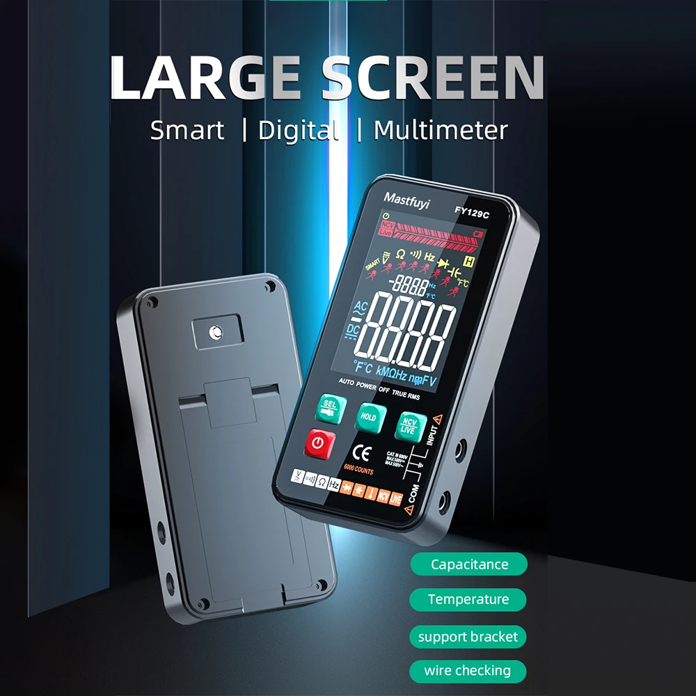 Multímetro Digital con pantalla a Color FY128C/129C 5999 T-RMS Probador de electricista Profesional Multimetro de capacitancia de voltaje CA CC