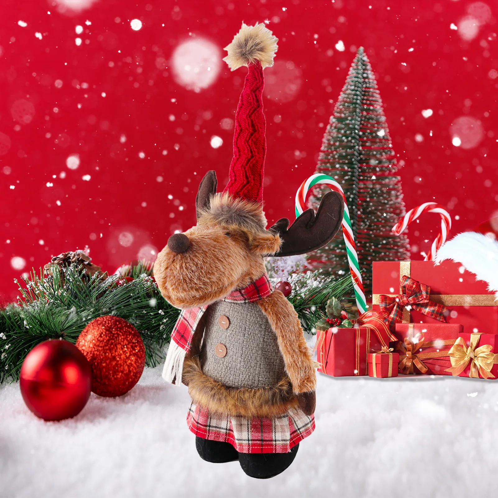 Puntos destacados:1. 【Crea atmósfera navideña 】La muñeca de alce de pie está diseñada con un encantador Papá Noel con sombreros y blusas, que son adorables y atractivos, que traen fortuna y buena suerte a sus amigos y familiares.