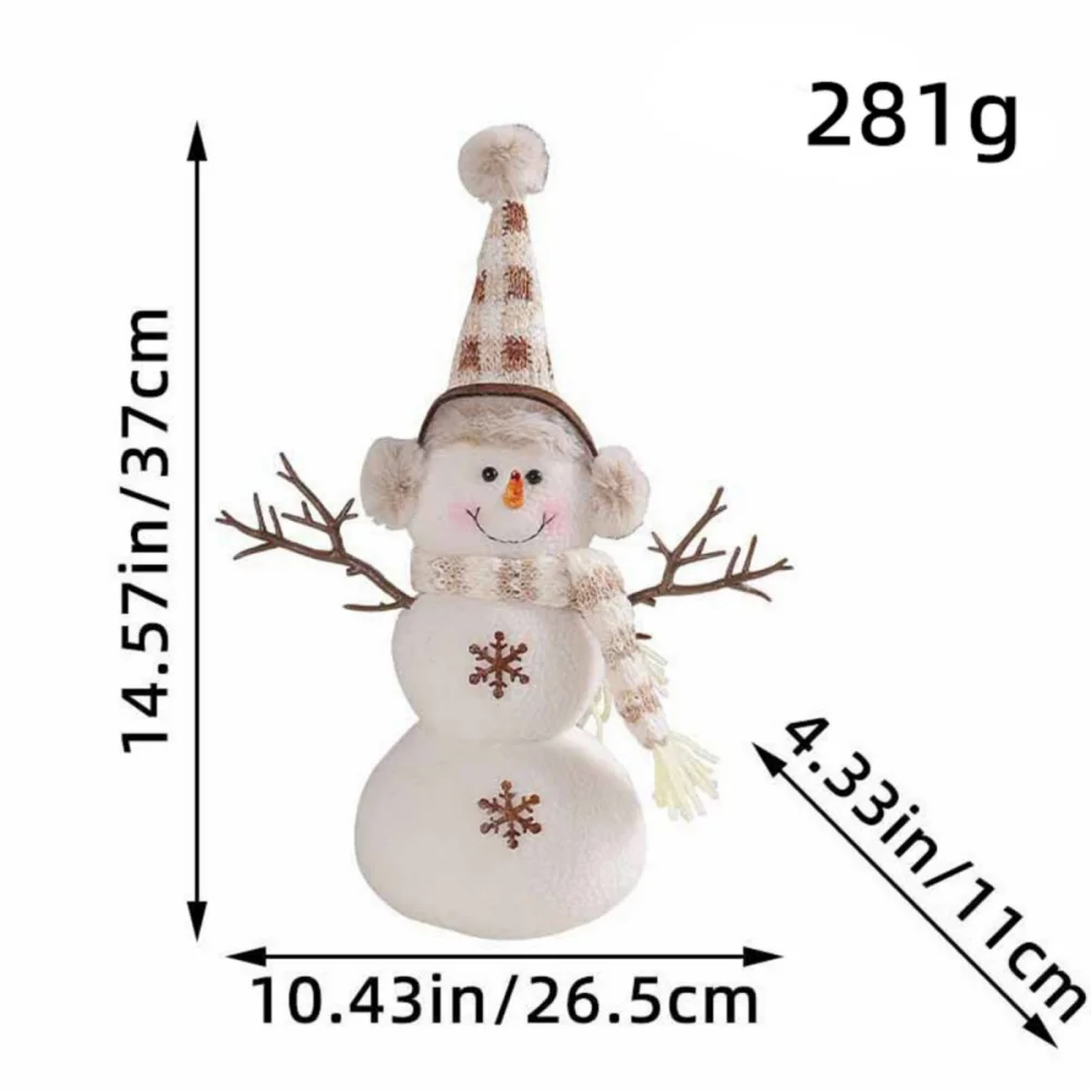 3. El muñeco de nieve sentado hecho de tela y felpa de alta calidad, súper suave, respetuoso con la piel, no se desvanece, sin pelusas; Costuras firmes, mano de obra exquisita, que es su elección para la decoración y el regalo de Navidad.