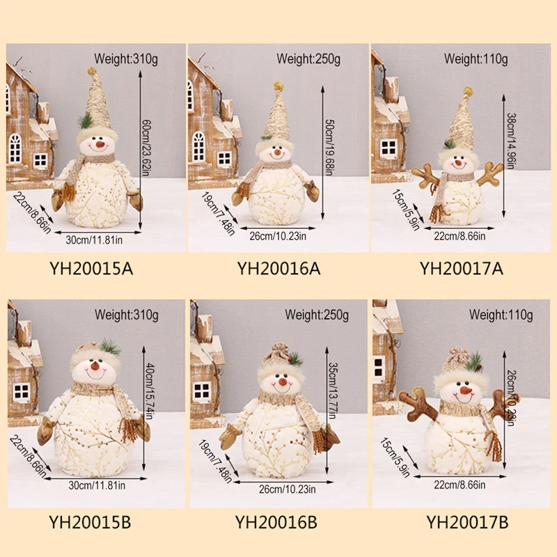 1. Muñeco de nieve navideñoDecoraciones: en este día especial, deje que el muñeco de nieve de Navidad lo acompañe a través de estas cálidas vacaciones, puede colocarlos cerca del árbol de Navidad o la mesa. Añada un hermoso ambiente festivo a las fiestas navideñas y las fiestas familiares. Celebra el día más importante del año.