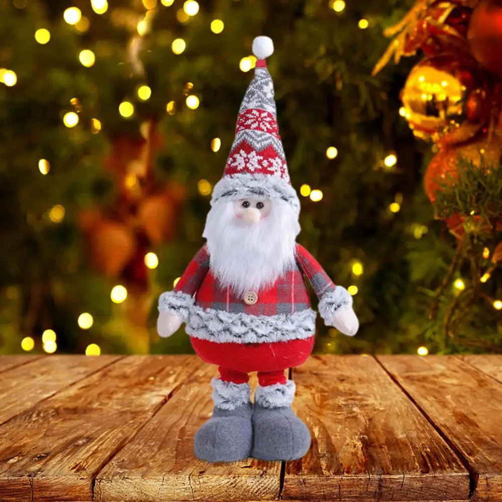2. Maravilla extensible: Con su diseño retráctil, nuestra muñeca telescópica navideña puede adaptarse a cualquier superficie, de pie firmemente sobre sus muslos flexibles. Despliegue sus patas para añadir un toque festivo a su mesa.