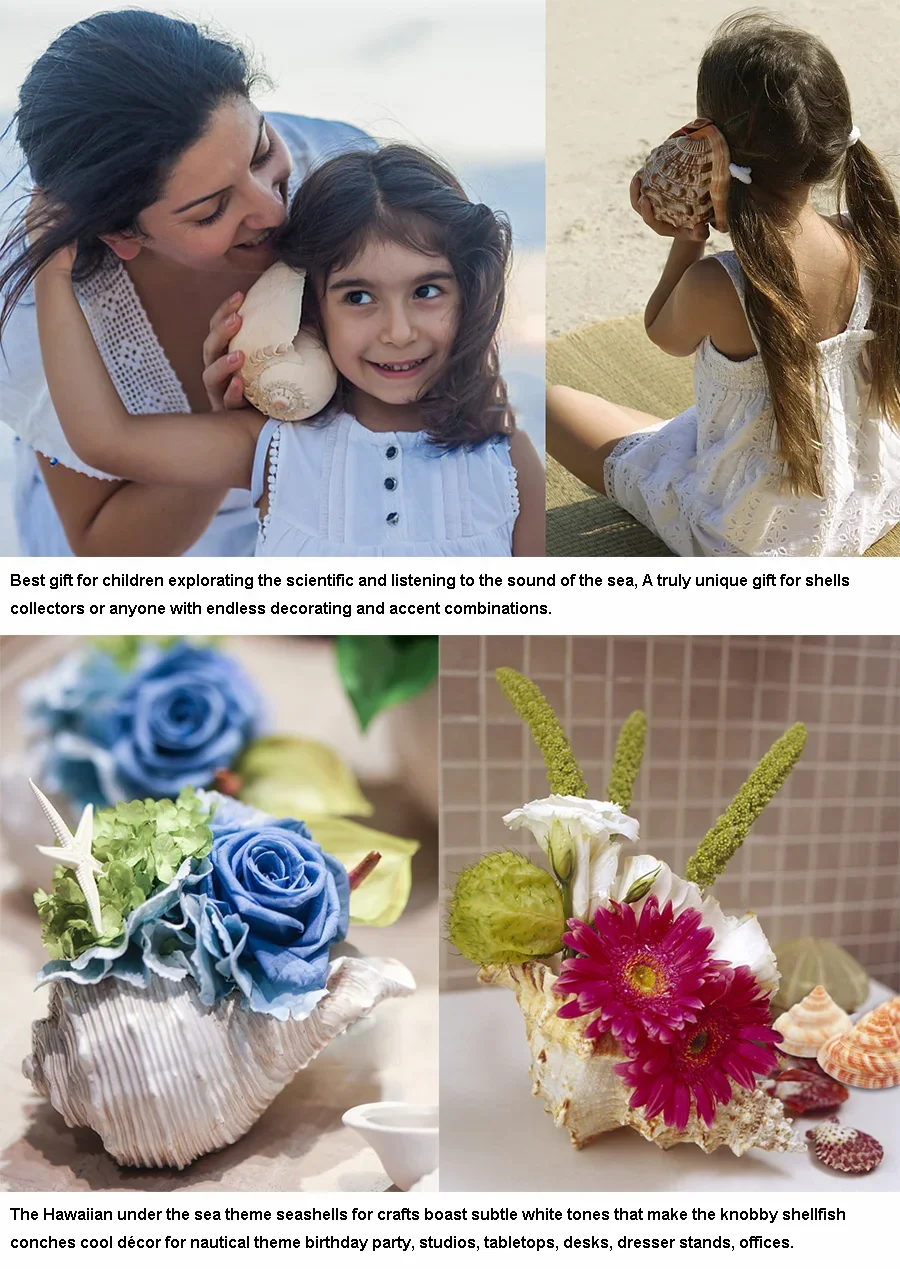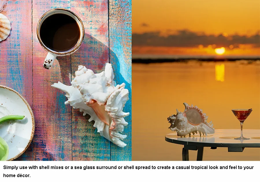 IMPRESCINDIBLE: las conchas marinas Murex son una excelente adición para bodas en la playa, fiestas hula o reuniones hawaianas.Quedan hermosos colocados afuera en un jardín de hadas o patio.¡Estas grandes conchas combinarán con cualquier decoración de hogar costero existente que puedas tener!También se pueden utilizar como conchas marinas de acuario para decoración.