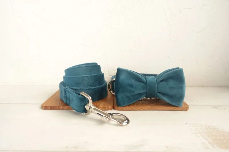 MUTTCO diseño único pajarita de moda collar y correa para perros hechos a mano EL conjunto de collar para perros TURQUOESA 5 tamaños UDC097