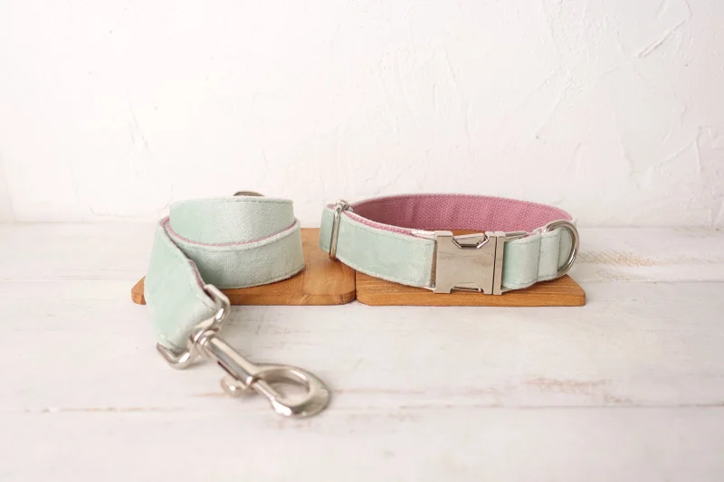 MUTTCO personalized pet dog ID tag collar leash THE MINT PINK self-design adjustable puppy nameplate collar 5 sizes UDC109