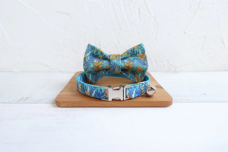 MUTTCO Collar colorido al por menor collar de gato hecho a mano THE LEAF Collar de gato de 2 tamaños UCC066