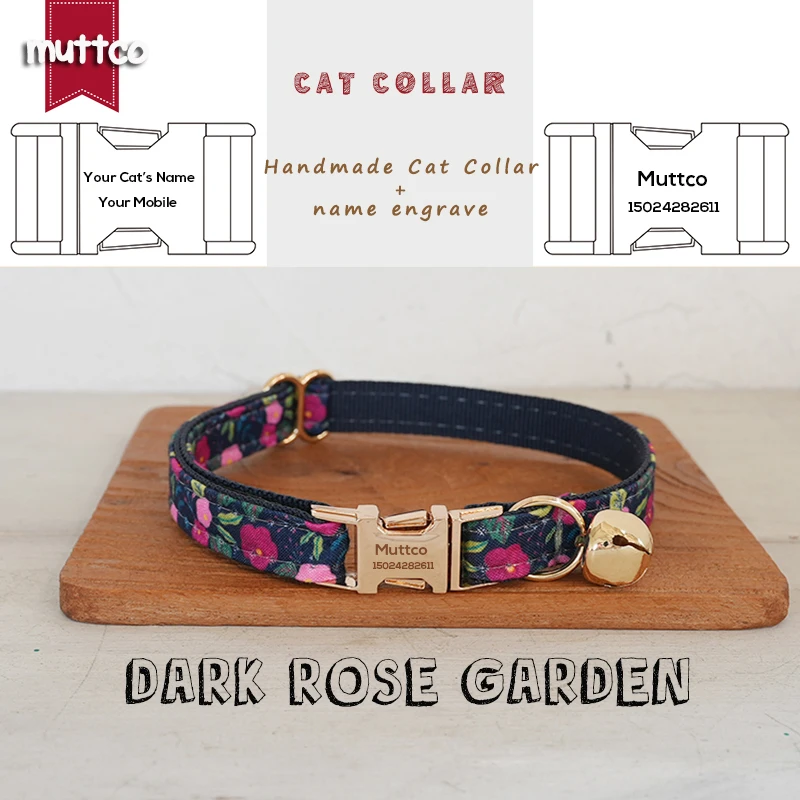 MUTTCO venta al por menor ngraved hermoso collar hecho a mano DARK ROSE GARDEN diseño único collar de gato 2 tamaños UCC149