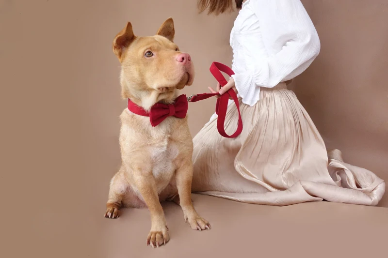 Juego de collar y correa para perro con pajarita