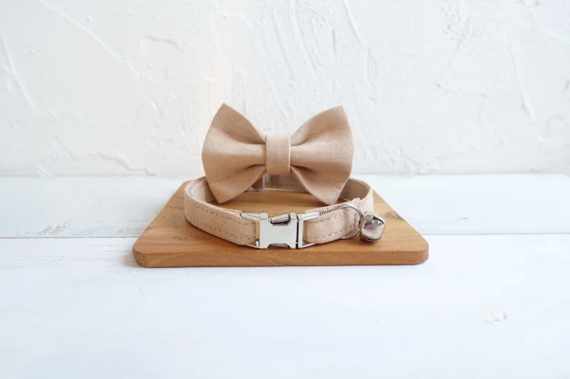 MUTTCO minorista collar de perro de diseño propio THE LADY collar de gato de poliéster satinado y nailon de 2 tamaños hecho a mano marrón claro UCC027