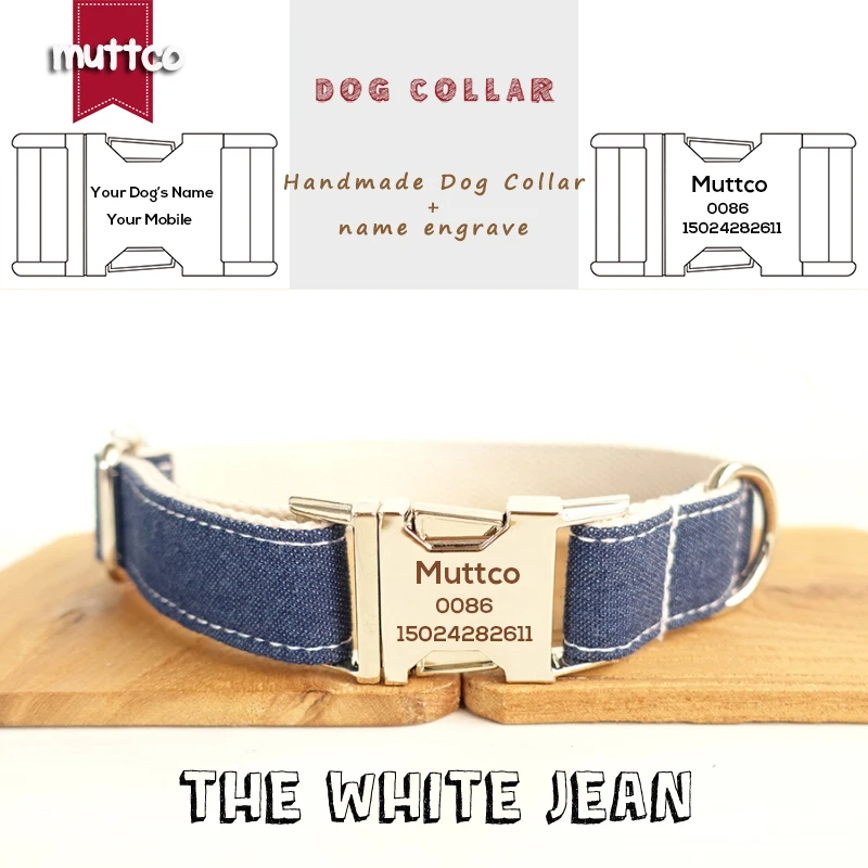 MUTTCO Collar para perros grabado con láser, venta al por menor, diseño propio especial, Collar para perros con rayas de JEAN BLANCO antipérdida, 5 tamaños