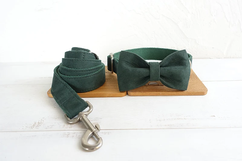 Juego de collar y correa para perro con pajarita
