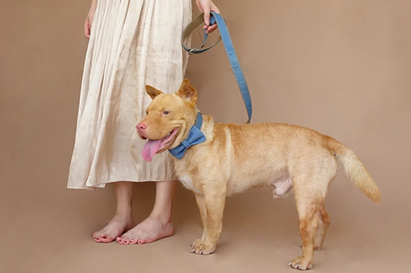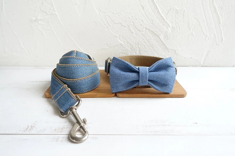 Juego de collar y correa para perro con pajarita