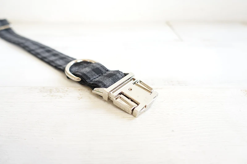 Collar para perros MUTTCO respetuoso con el medio ambiente Collar para mascotas flexible PLAID NEGRO conveniente para pasear al perro Collar para perros de 5 tamaños UDC075