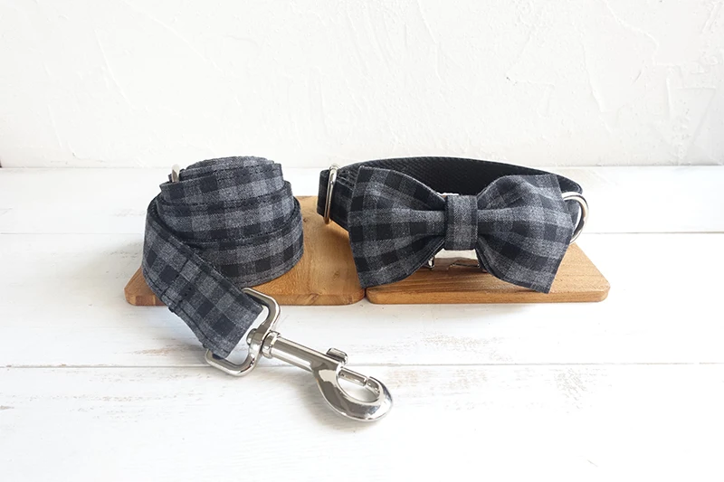 Juego de collar y correa para perro con pajarita
