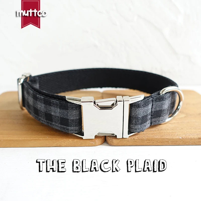 Collar para perros MUTTCO respetuoso con el medio ambiente Collar para mascotas flexible PLAID NEGRO conveniente para pasear al perro Collar para perros de 5 tamaños UDC075
