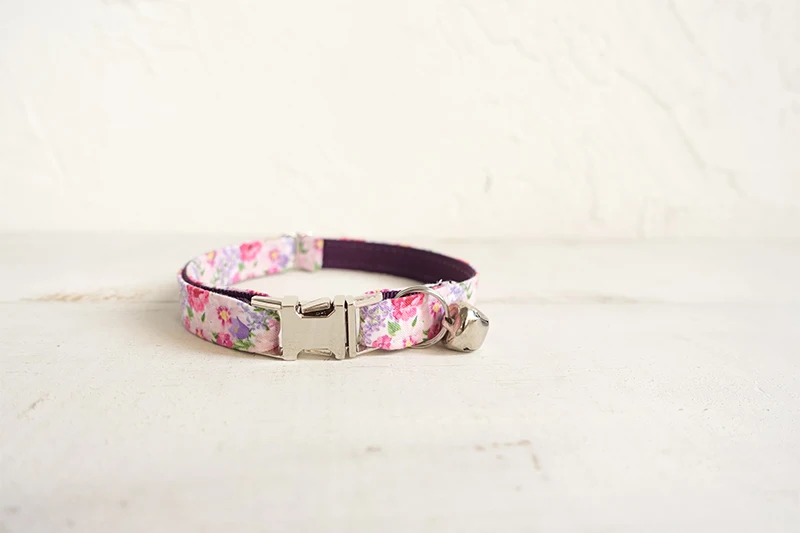 MUTTCO Collar personalizado para gatos particular, collares para gatos de estilo creativo THE PURPLE FLOWER, 2 tamaños UCC049