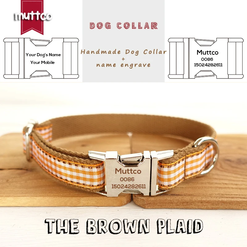 MUTTCO Collares personalizados para cachorros para mascotas con nombre minorista Collar estilo Inglaterra Collar grabado para perros Collar para perros THE MARRÓN PLAID 5 tamaños UDC013