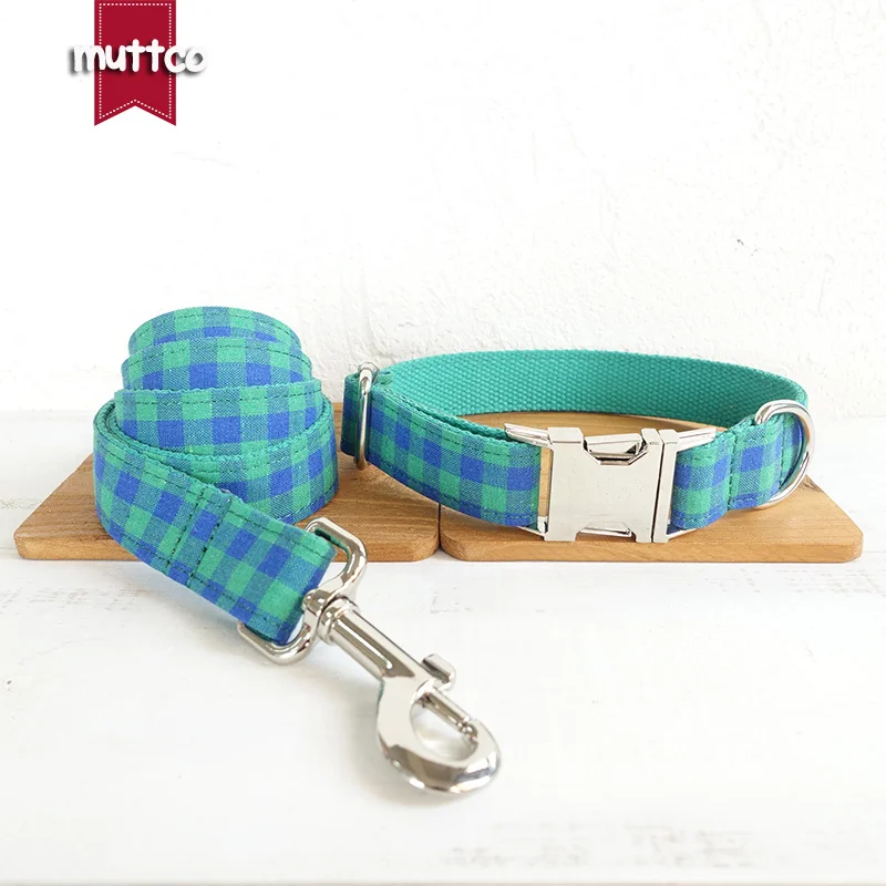 MUTTCO security training dog harness pet strap THE BLUE GREEN PLAID flexible dog collar and leash set for small large dog UDC073