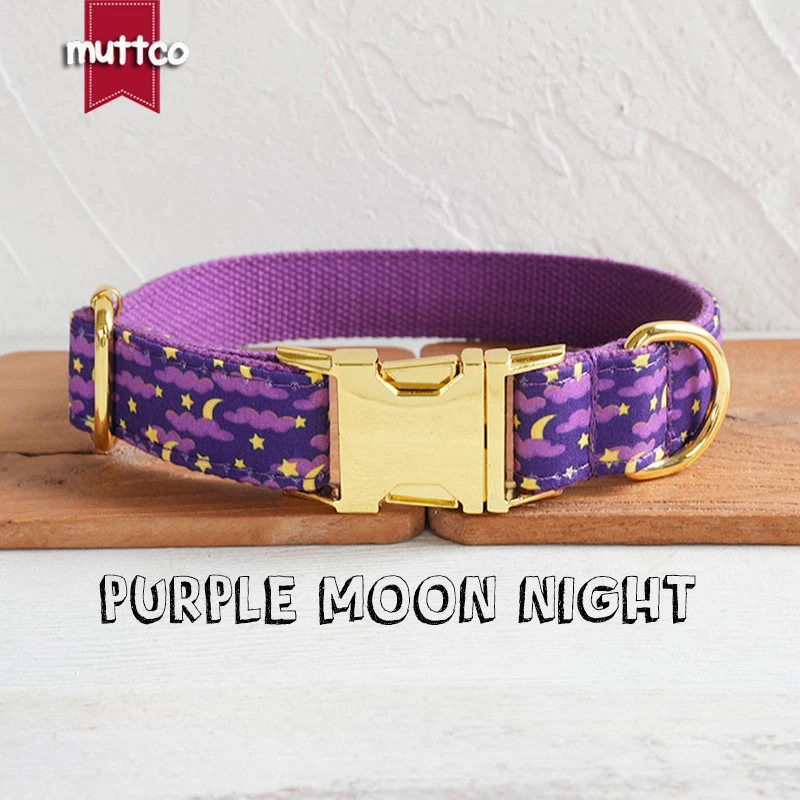 MUTTCO este collar para perros con motivo de luna y estrella de noche PÚRPURA LUNA NOCTURA que agrega un toque de ensueño UDC222