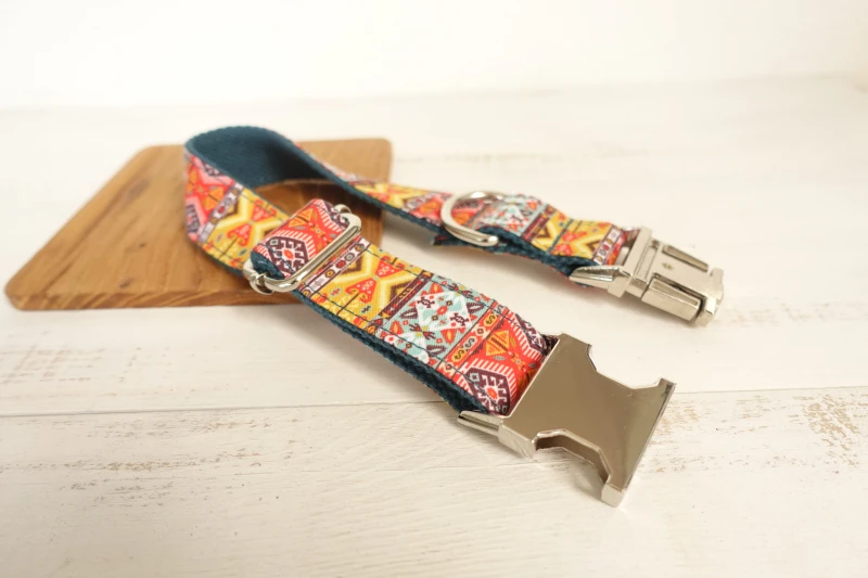 MUTTCO minorista hecho a mano a prueba de tiempo grabado nombre de mascota collar de perro THE BOHEMIAN collar de perro de estilo étnico creativo 5 tamaños UDC050