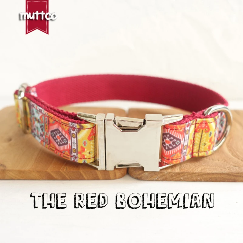 MUTTCO minorista moda hecho a mano suave collar para perro rebeldes con flores pequeñas THE RED BOHEMIAN collares para perros 5 tamaños UDC055
