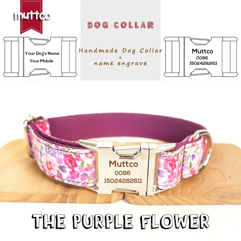 MUTTCO venta al por menor grabado personalizado collar de identificación para perros THE PÚRPLE FLOWER collares y correas para perros de estilo creativo 5 tamaños UDC049