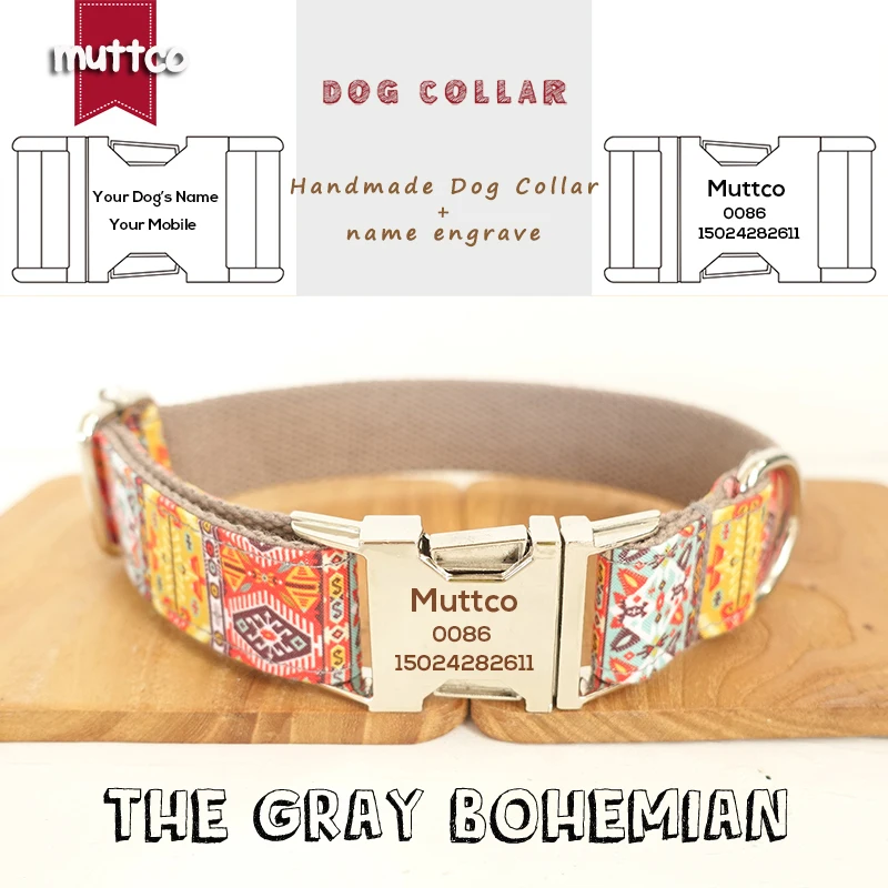 MUTTCO retailing self-design personalized pet collar THE GRAY BOHEMIAN unique folk style dog collars and leashes 5 sizes UDC051