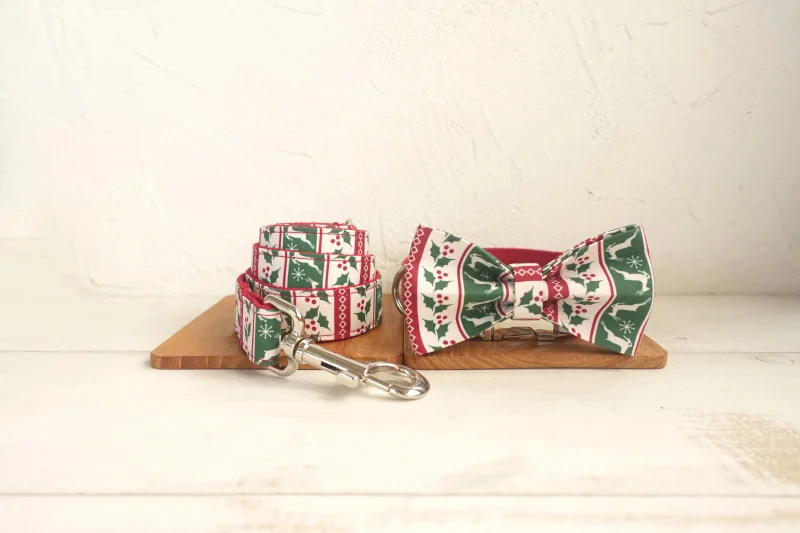 Juego de collar y correa para perro con pajarita