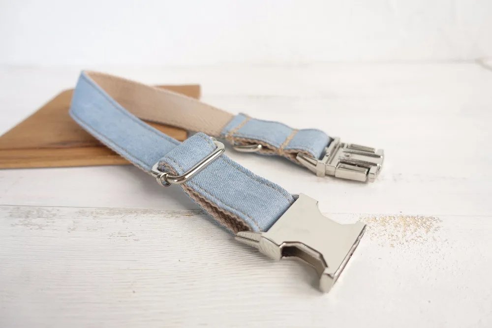 MUTTCO vende al por menor collar de perro de diseño propio THE LIGHT JEAN collar hecho a mano wathet azul y blanco 5 tamaños collar de perro UDC034 - imagen 2