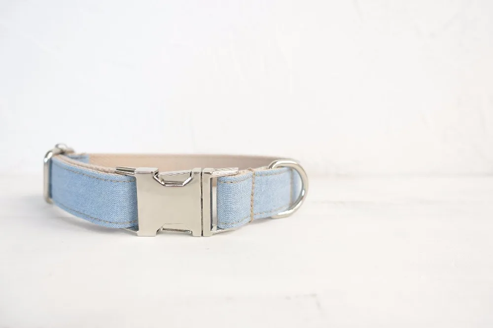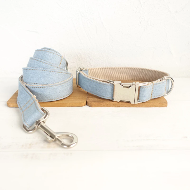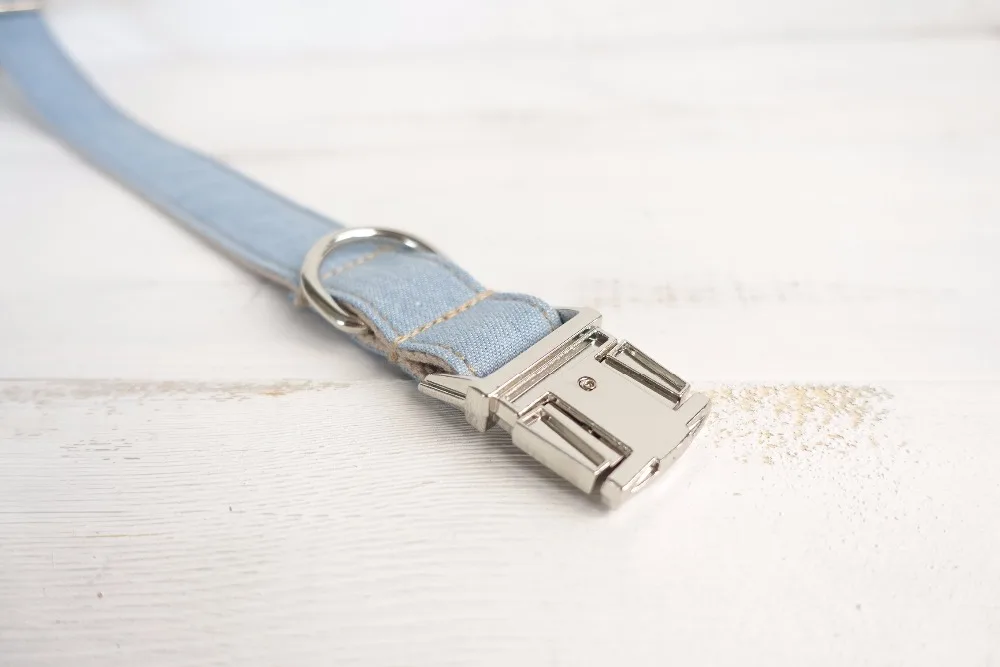 MUTTCO vende al por menor collar de perro de diseño propio THE LIGHT JEAN collar hecho a mano wathet azul y blanco 5 tamaños collar de perro UDC034 - imagen 1