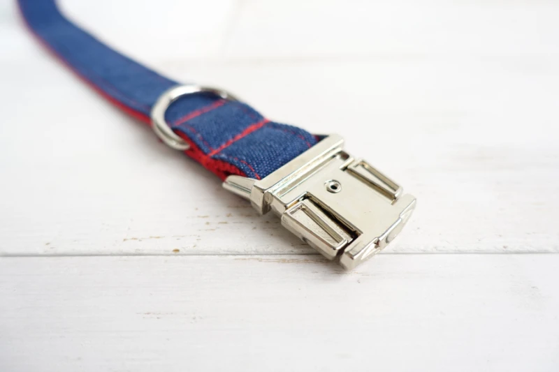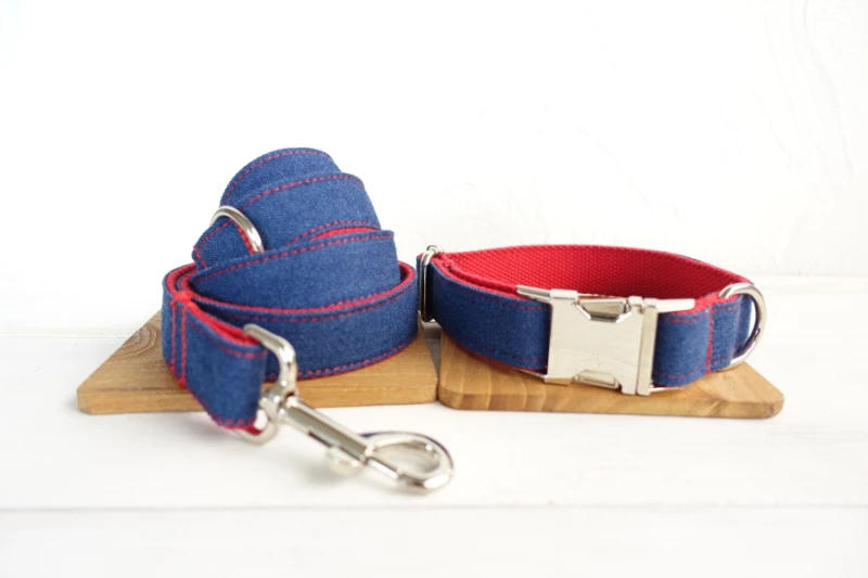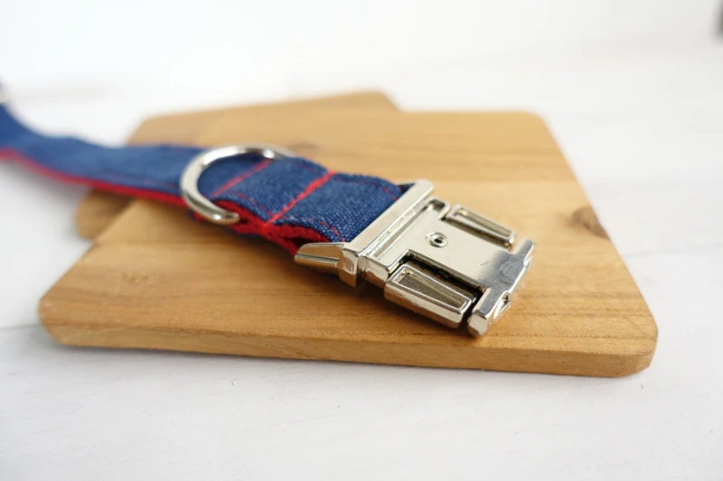 MUTTCO minorista hecha a mano especial correa para perros de diseño propio THE RED JEAN collares y correas para perros con rayas de lona 5 tamaños UDL018