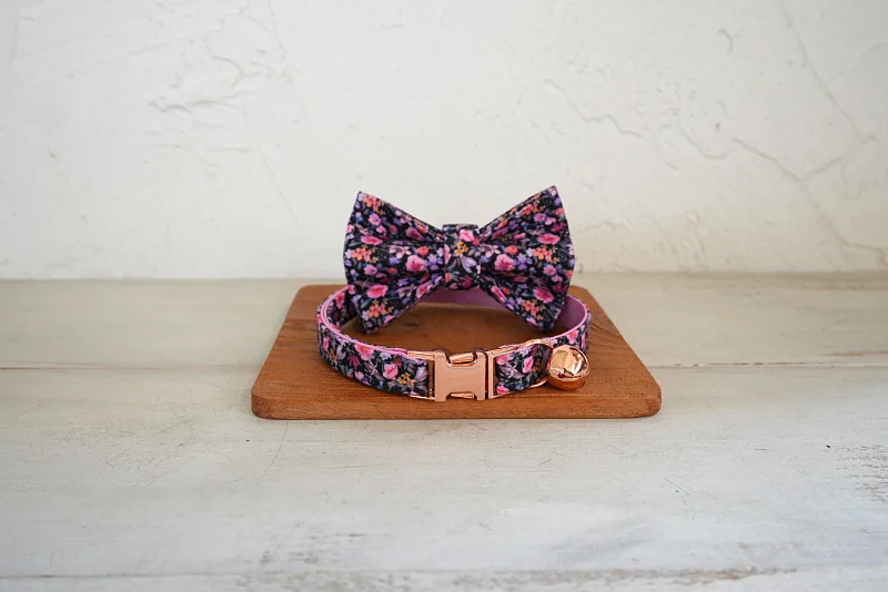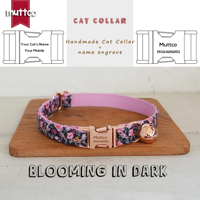 MUTTCO Venta al por menor Grabado Hermoso patrón de flores Diseño Hecho a mano BLOOMING EN EL OSCURO Collar Diseño único Collar de gato 2 tamaños UCC207