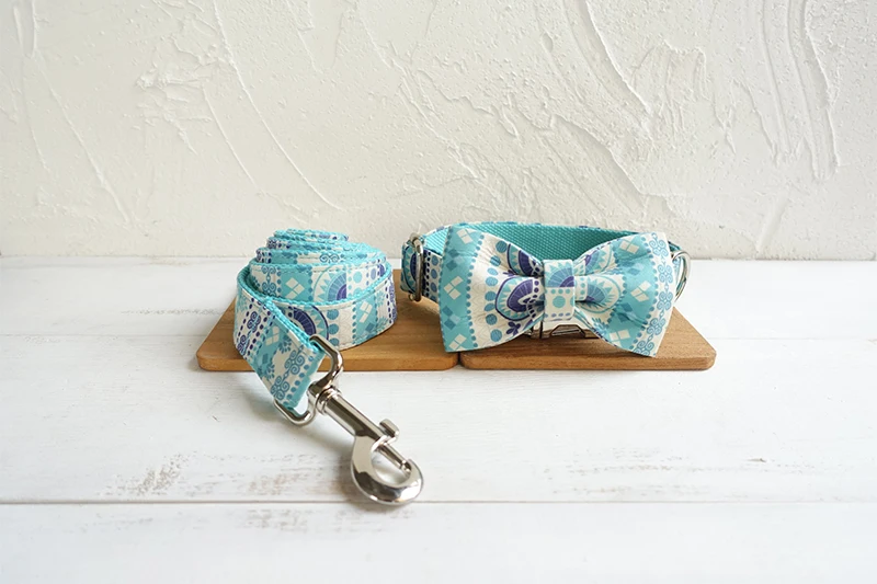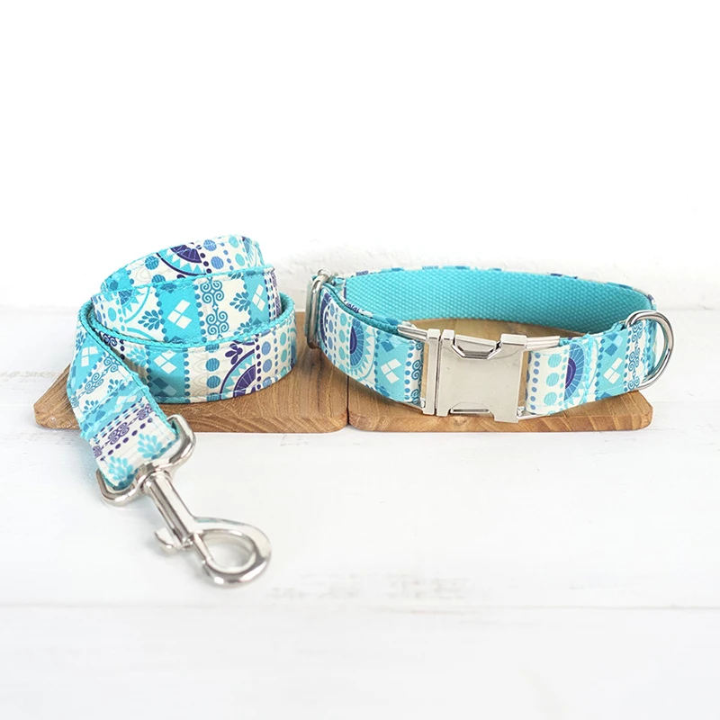 MUTTCO venta al por menor collar hecho a mano de alta calidad moda zafiro THE FOLK BLUE collar para perro 5 tamaños UDC023