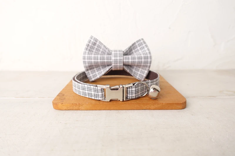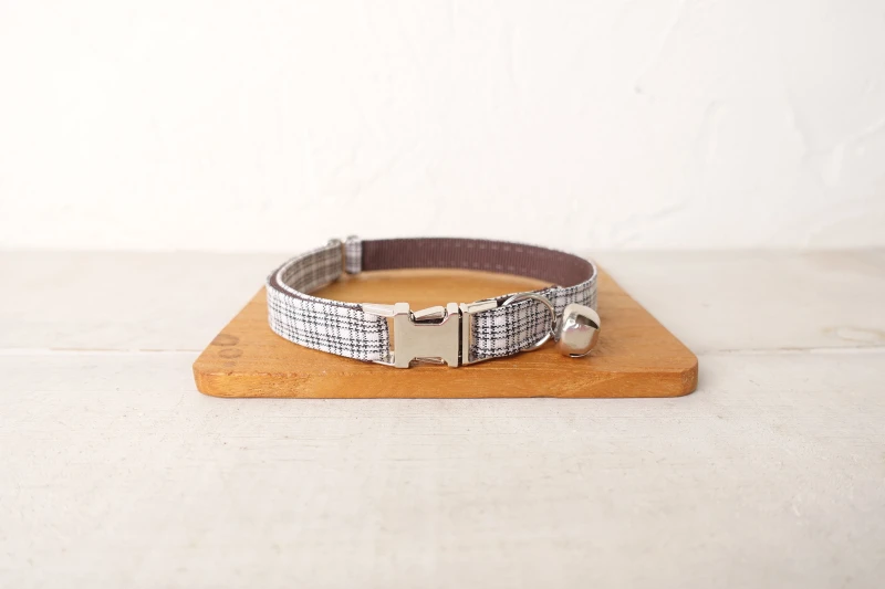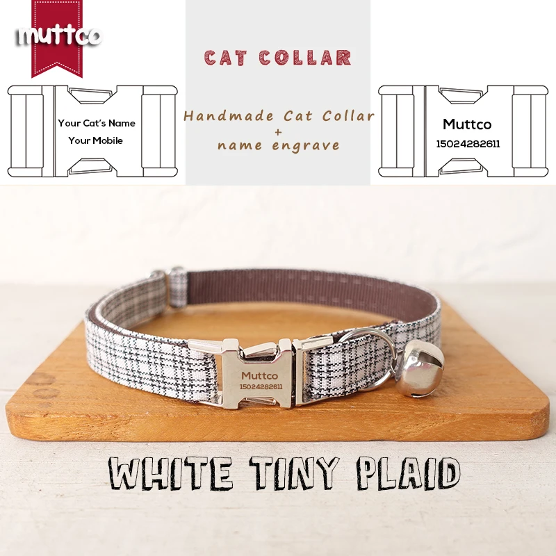 MUTTCO Collares de gato personalizados de diseño propio delicados grabados al por menor Collar hecho a mano PLAID WHITE TINY 2 tamaños UCC102