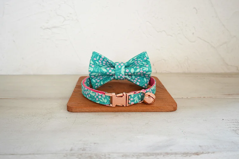 MUTTCO 소매 아름다운 꽃 패턴 디자인 수제 CINE 핑크 ROSA 칼라 독특한 디자인 고양이 칼라 2 크기 UCC163