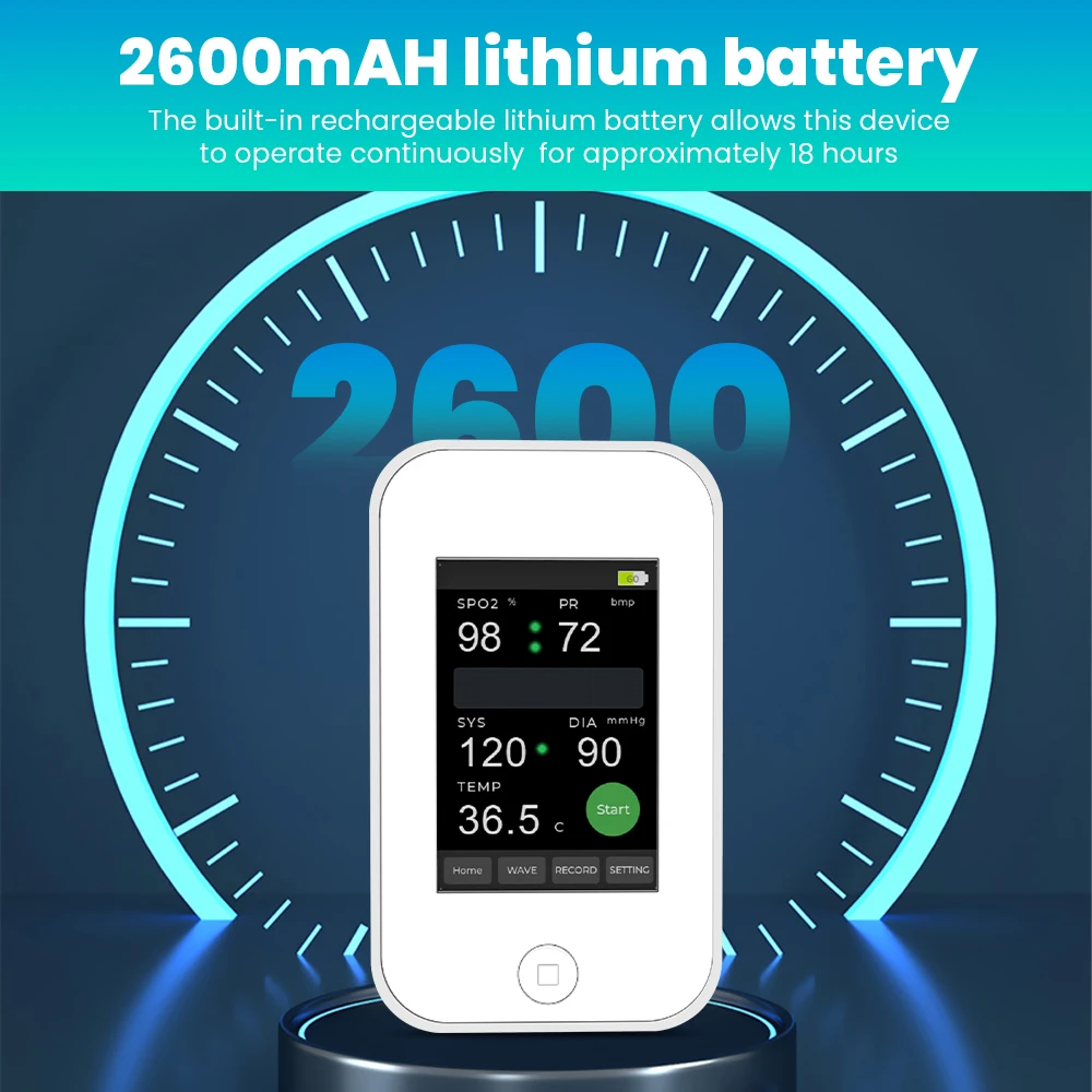 5.La batería de litio recargable incorporada permite que el equipo funcione continuamente durante aproximadamente 18 horas