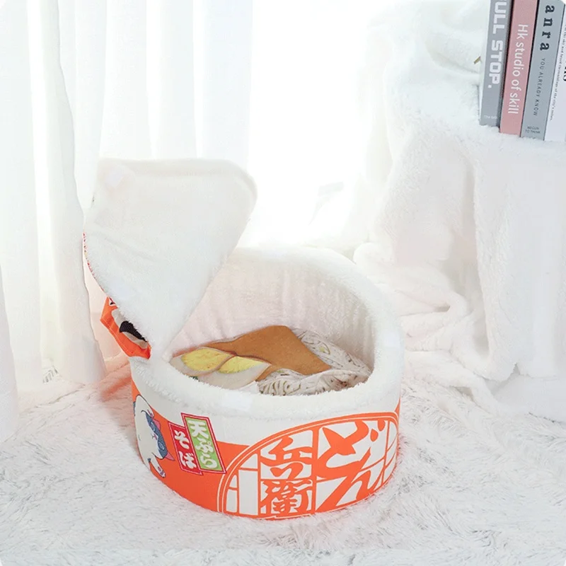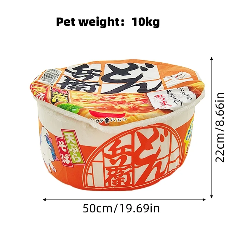 Super comfy and squishy! Comes with a fluffed fleece "ramen lid" and a plush ramen soup noodles cushion! With velcro fastenings.
