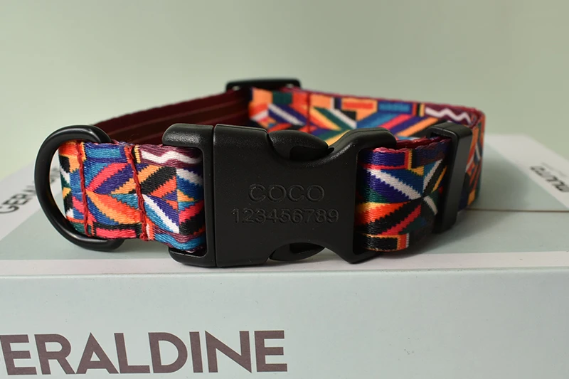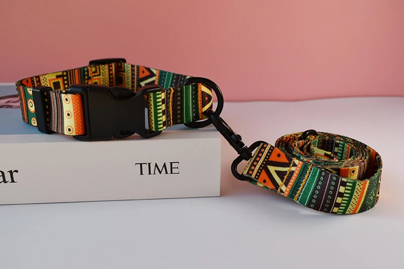 Juego de collar y correa para perros con estampado de nailon de estilo nacional, Collar pequeño ajustable para cachorros, collares para mascotas para perros, grabado gratuito para mascotas