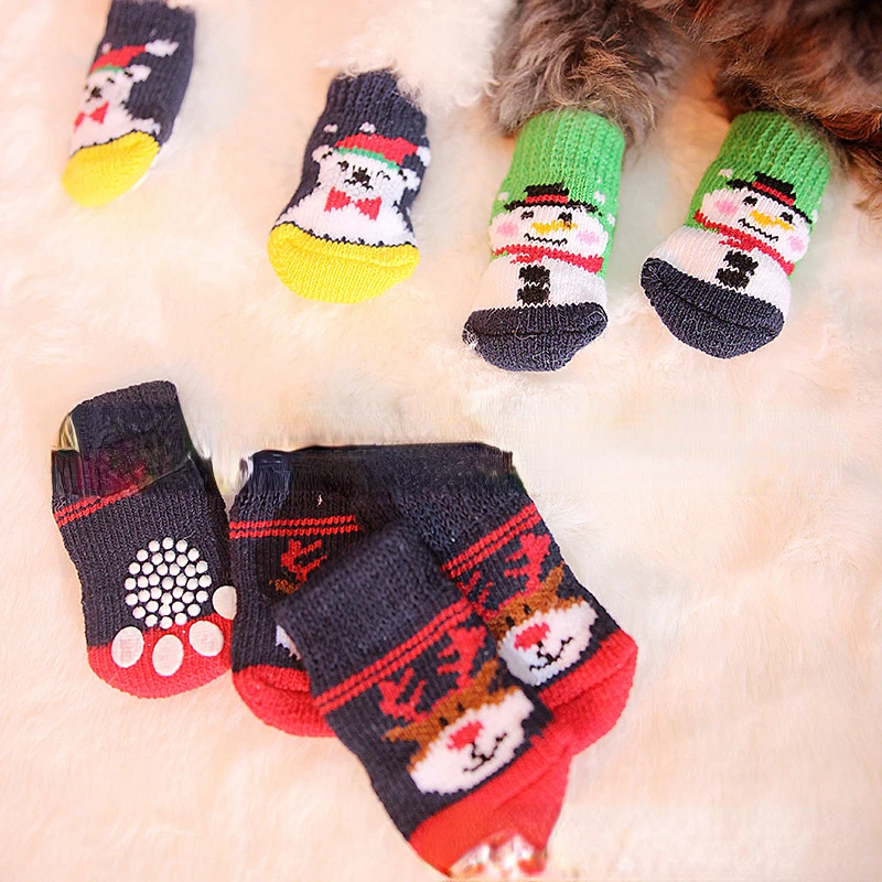 Navidad gato perro Festival vestir accesorios lindo antideslizante inferior muñeco de nieve Teddy calcetines gruesos para mascotas zapatos para perros pequeños