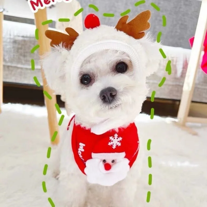 Conjunto de gorro y pañuelo navideño para mascotas: patrón festivo de cervatillo, algodón de poliéster suave, para perros pequeños y gatos de hasta 7,5 kg