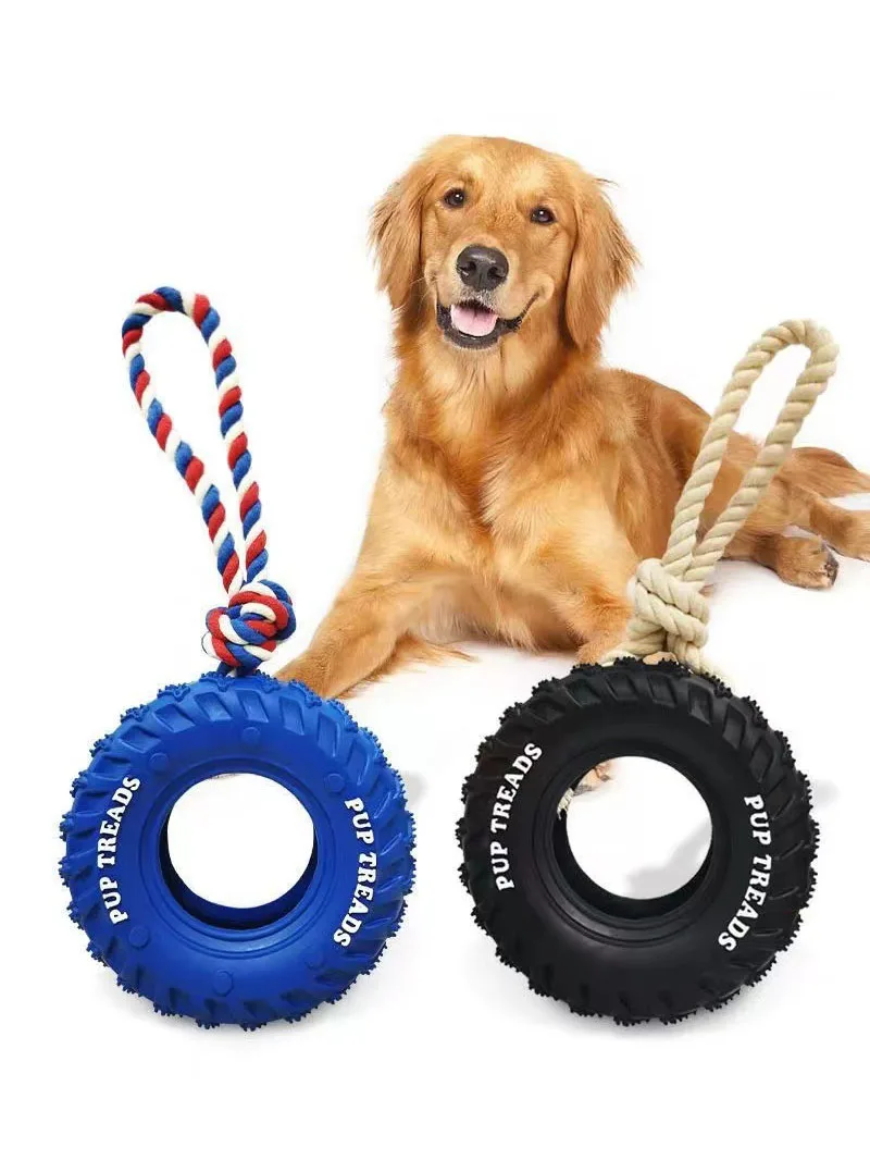 Neumáticos de goma resistentes a las mordeduras para perros, juguetes interactivos de entrenamiento para rechinar los dientes, juguetes para perros grandes, 2 tipos