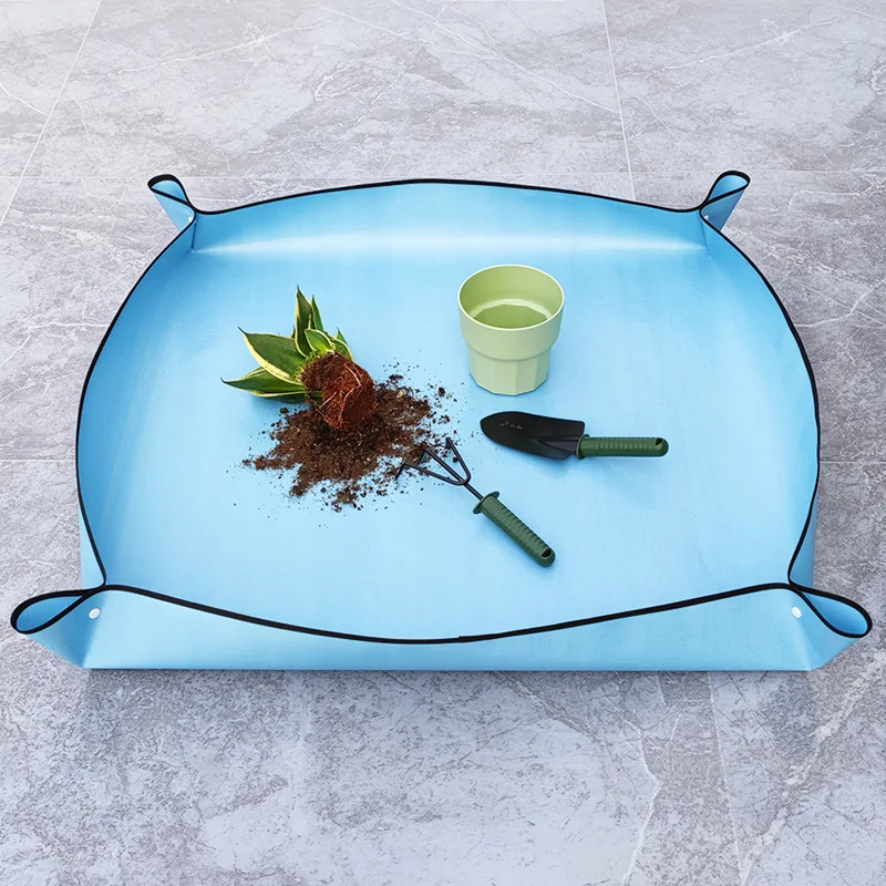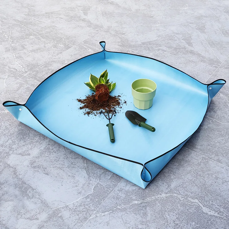 Tiene bordes y broches en las cuatro esquinas.Está hecho de material de película de PE, resistente al desgaste e impermeable, cambia ollas y tierra, mezcla la tierra con tierra, recorta plantas, resistente al agua y a las manchas, fregado y limpieza sencillos, almacenamiento conveniente y no ocupa espacio.
