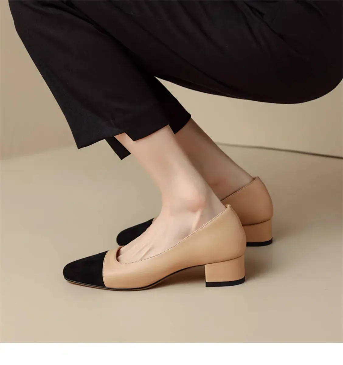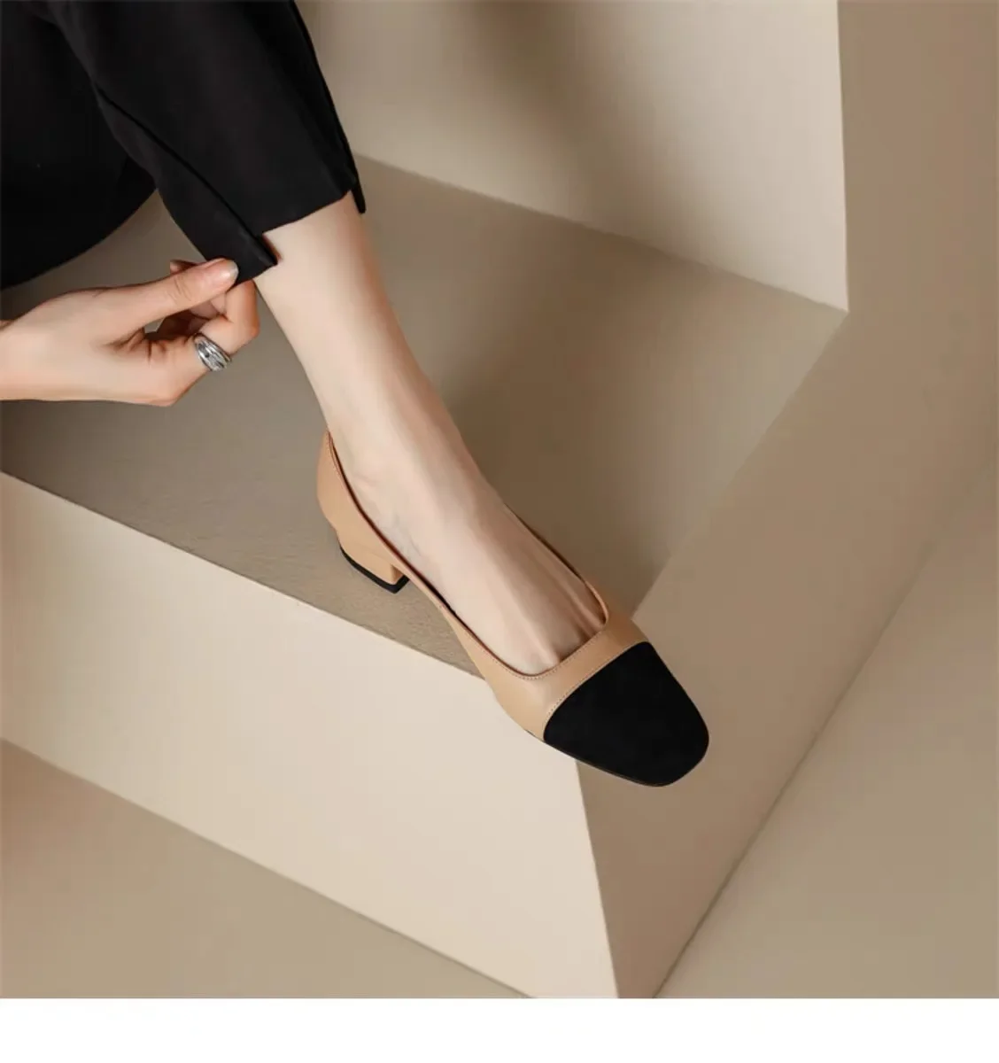 New Leather Women's Heeled Single Shoes Sandals Thick Heel Chaussure Femme Zapatos Mujer Sandalias Sapatos Pumps Formal Shoes