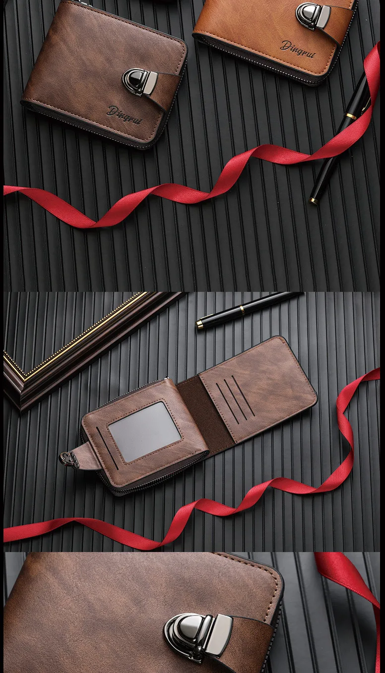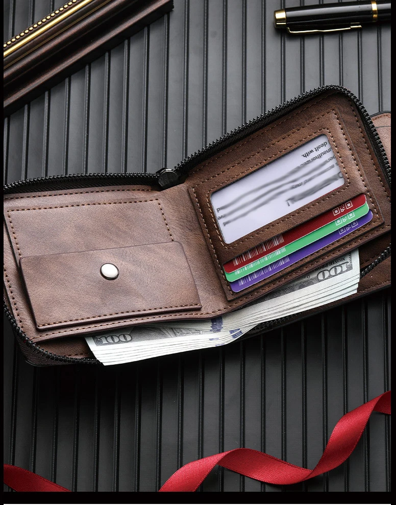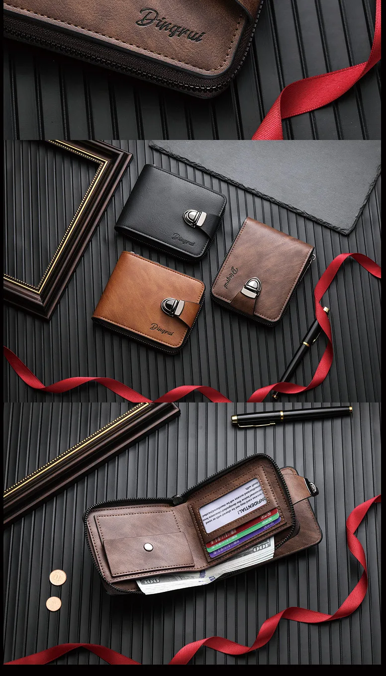 New Men's Premium Sense Short Frosted Leather Wallet Multi-Slot Coin Pocket Photo Holder Small Men's Wallet High Quality