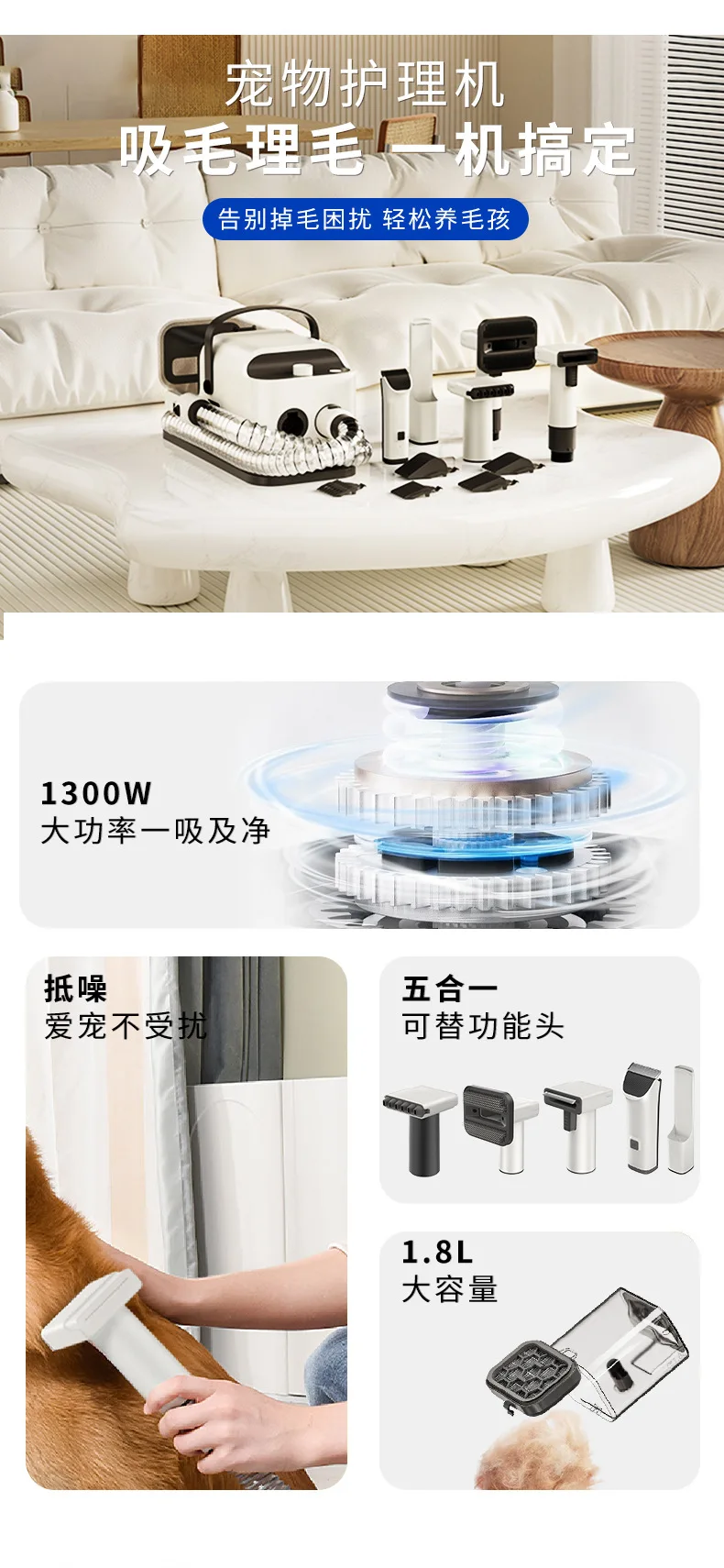 New Pet Care Suction Cutting and Blowing Integrated Beauty Machine Cat and Dog Multi-function Low Noise Vacuum Shaving Machine