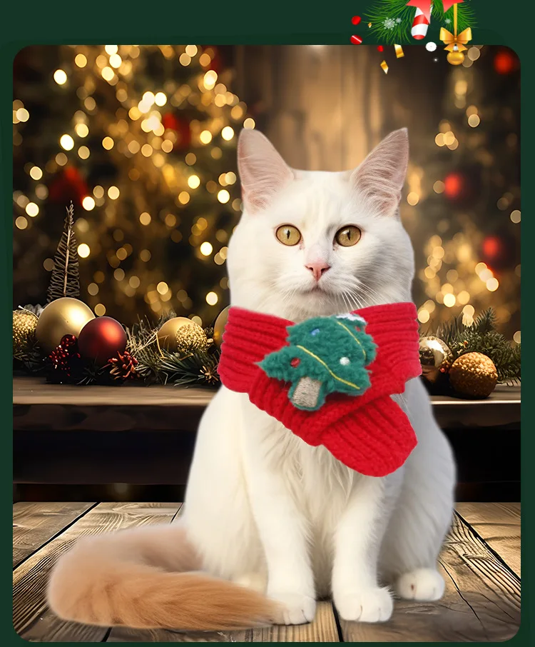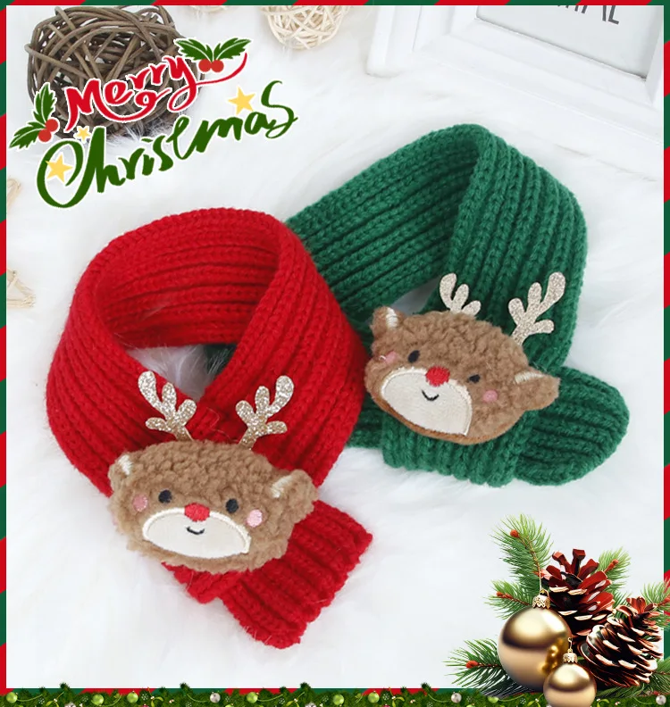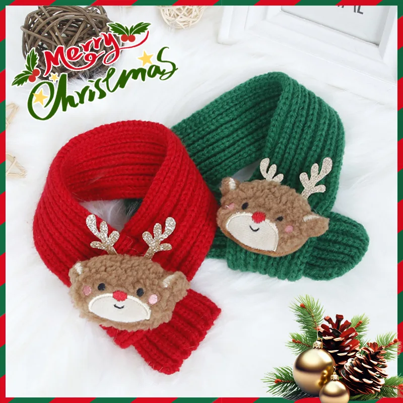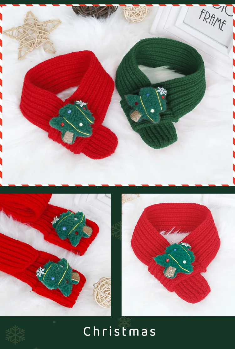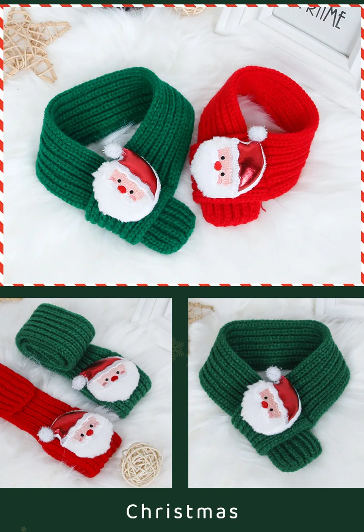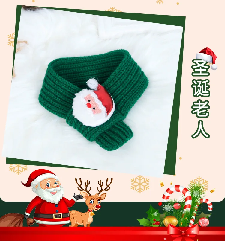 New Pet Knitted Christmas Scarf Cat Dog Yarn Cartoon Elk Snowman Warm Plush Hat Set Dog Accessories for Small Dogs