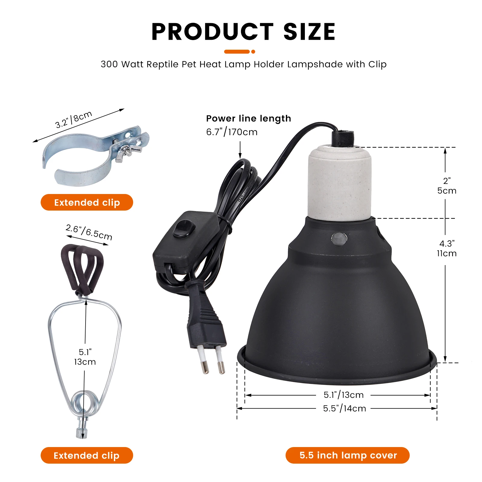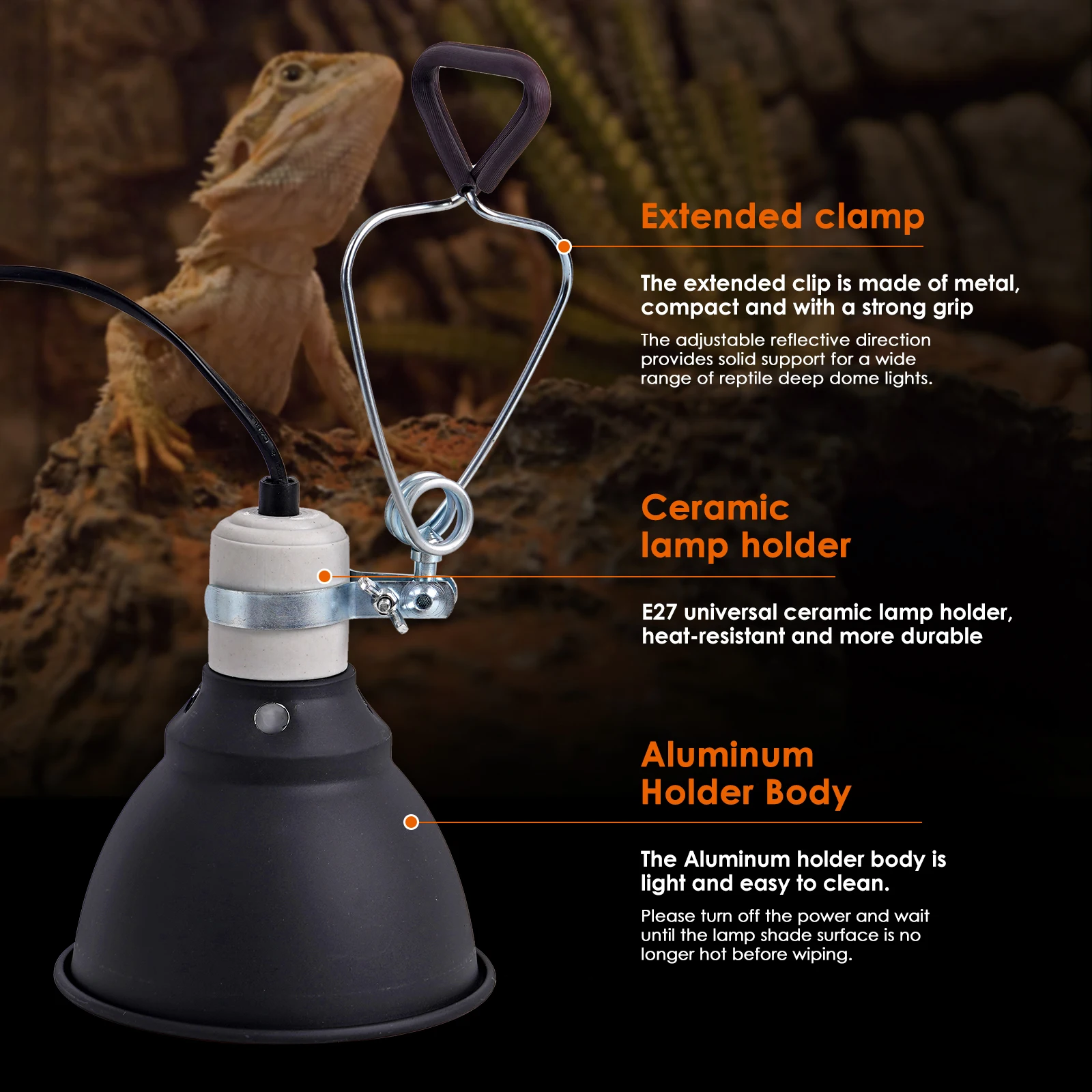 Exquisite and convenient in size, it adopts E27 ceramic lamp head and can withstand up to 300W.